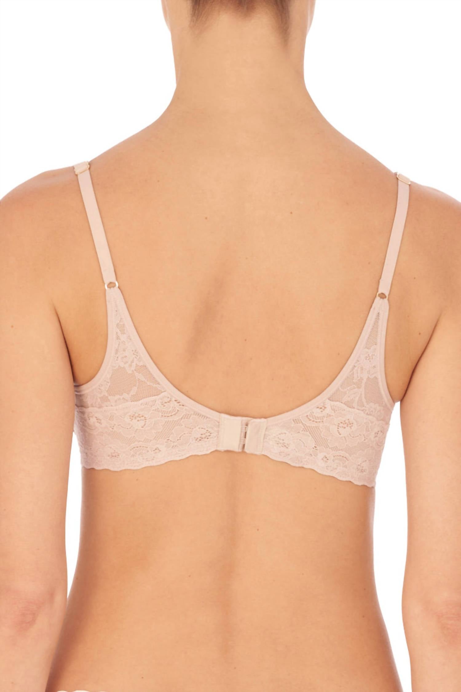 The most comfortable and stylish bra that you'll reach for daily. This lace contour underwire bra offers soft, seamless comfort designed to feel smooth against the skin and invisible under clothing. Lightly padded cups with a brushed lining provide gentle support, while stretch lace backs offer breathability and a secure fit. Finished with lace trim and a delicate crest at the center, it also features front-adjustable straps for easy customization.