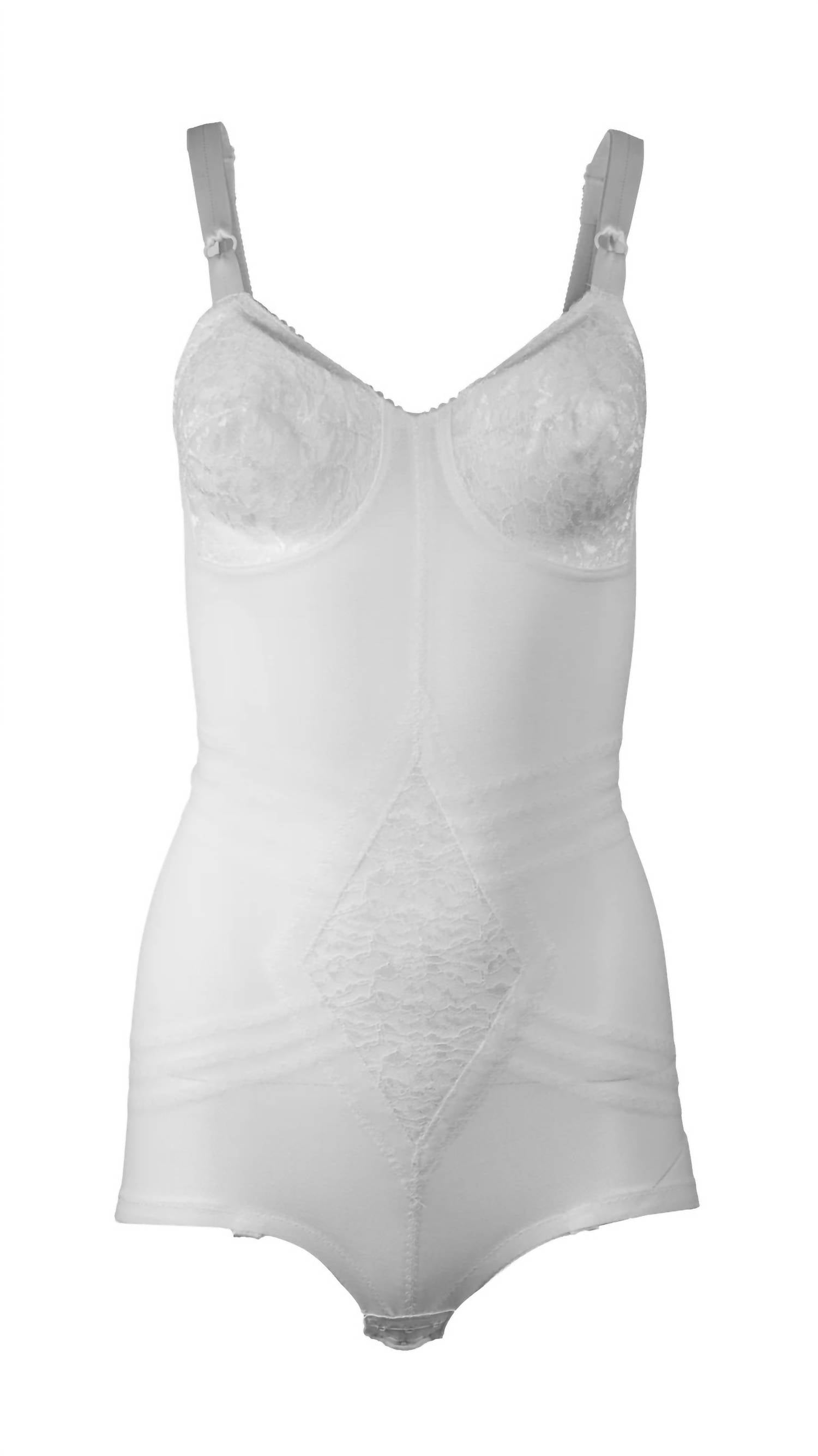 Feel confident and comfortable in the best shapewear out there. The Shapette Firm Control Body Briefer by Rago, in a versatile beige, is a standout in shapewear with its tailored design for full coverage. This body shaper is crafted from a stretchy nylon blend, consisting of 77% nylon and 23% Invista® Lycra®, ensuring comfortable, firm control. It features exclusive contour bands targeting the waist, hips, back, and derriere, with flat nylon lace cups and a tummy tamer panel for a sleek silhouette. For care, simply machine wash warm and line dry; avoid bleaching or ironing.