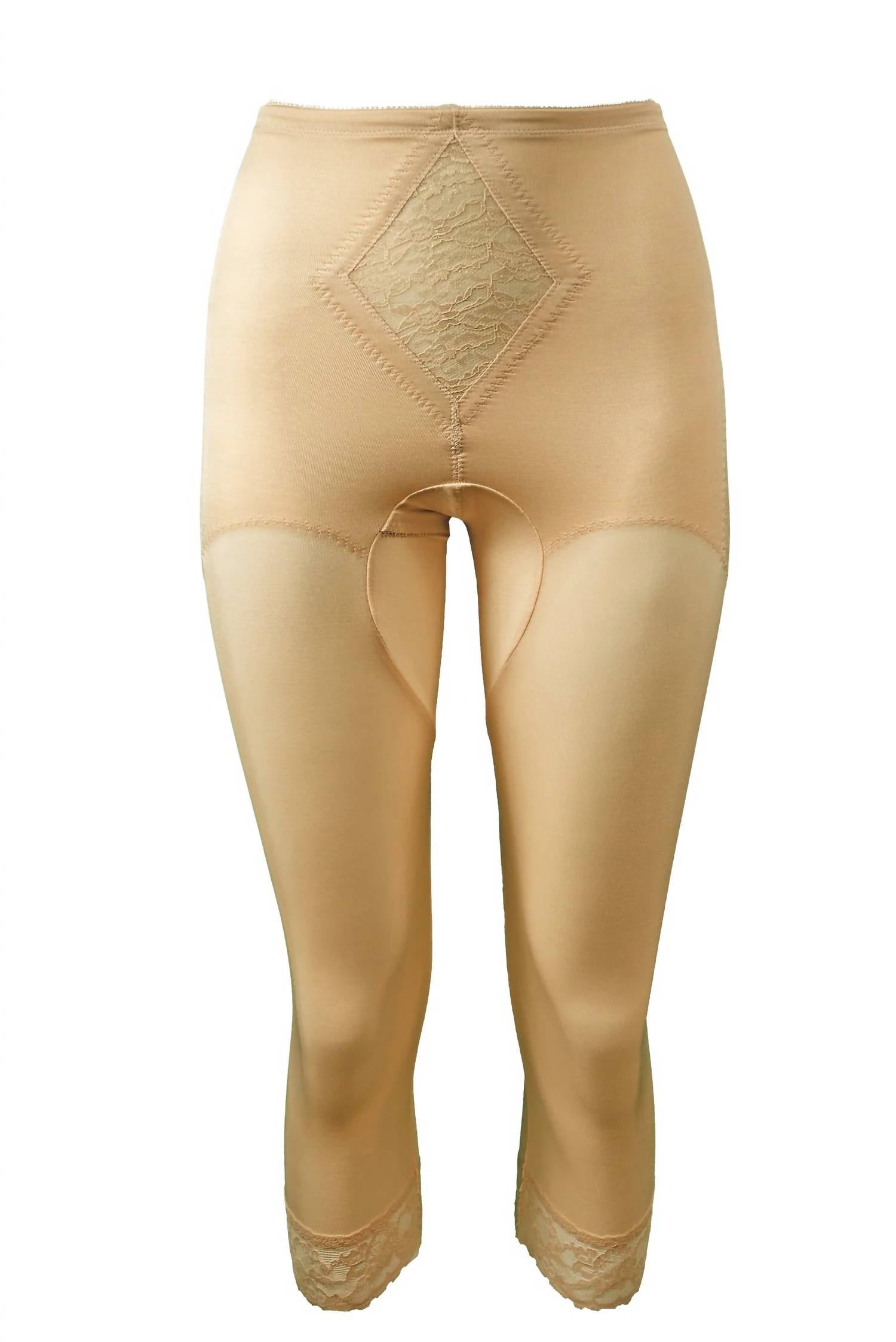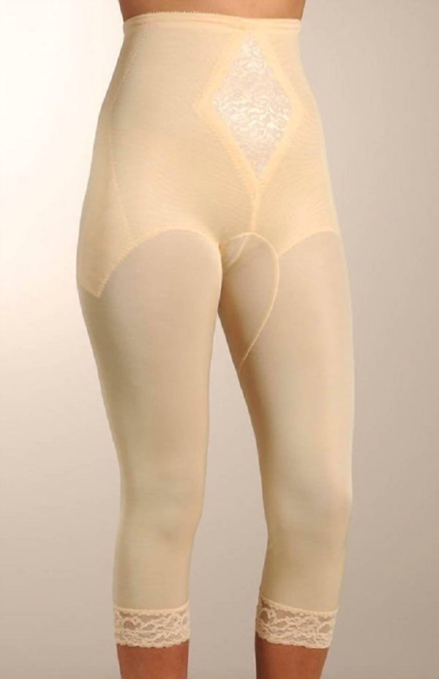 Confidence booster. Discover the Capri Shaper Pant Liner Shapewear by Rago, expertly crafted for the modern woman in a timeless hue. This mid-calf length piece, made from 80% Nylon and 20% Invista Lycra, features a comfort control panel that effectively flattens the tummy, along with a sculptured thigh panel for unmatched shaping. Tailored with a unique split crotch and flat sewn seams, it ensures silky smooth support that adapts with your body changes. Care instructions: Machine wash and line dry to maintain its impeccable fit.