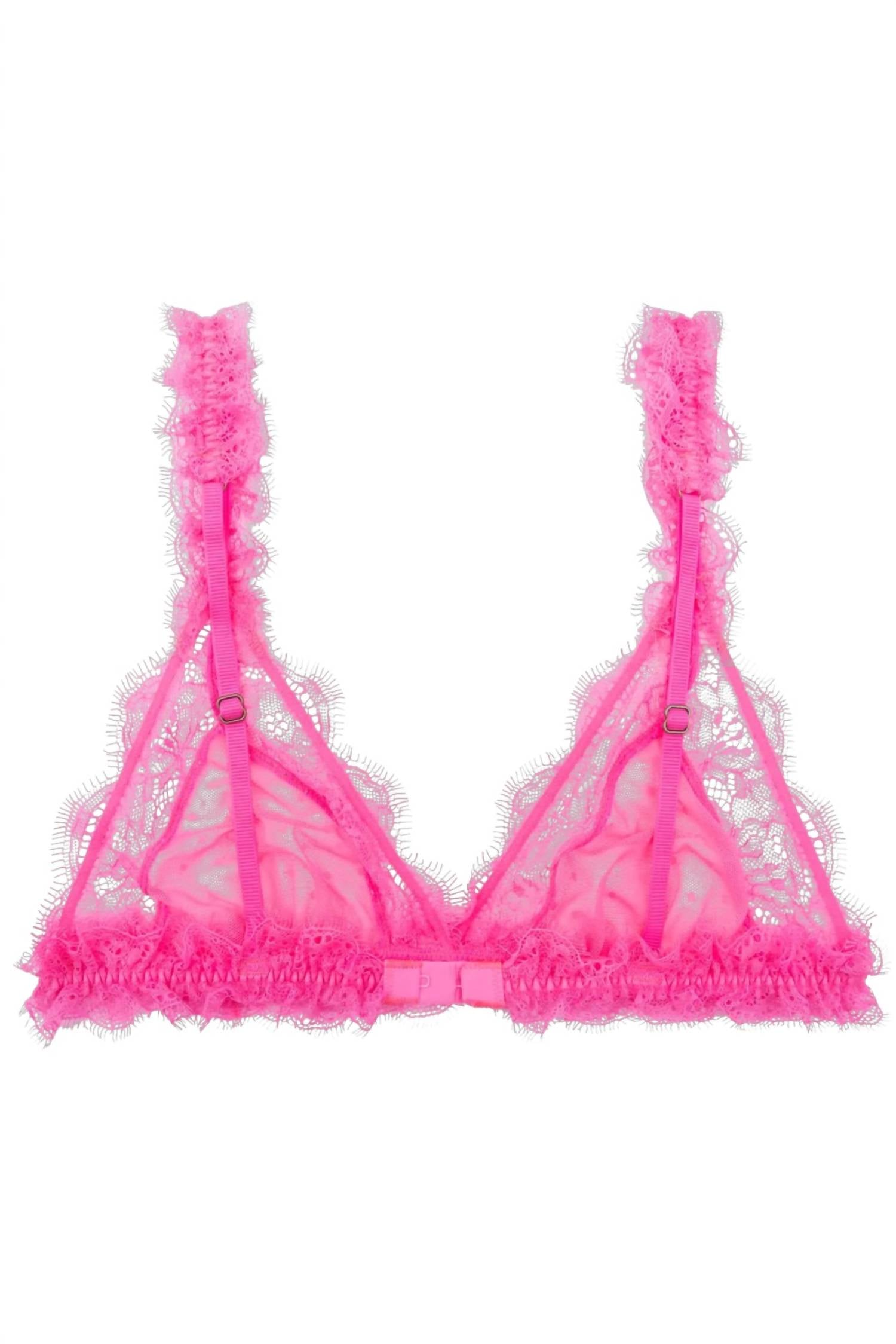 Both pretty and functional. Need we say more? Indulge in the Love Lace Unpadded Bralette by Love Stories, a feminine and flirtatious piece in vibrant hot pink. This women's bra features delicate triangle cups adorned with soft, stretch mesh and a charming dot pattern, while scalloped eyelash lace adds a touch of elegance. The adjustable shoulder straps and hook and eye closure ensure a personalized fit. Crafted from 95% Polyamide and 5% Elastane, this bralette offers light support with a comfortable elastic underband and is perfect for easy care with its machine wash and line dry instructions.