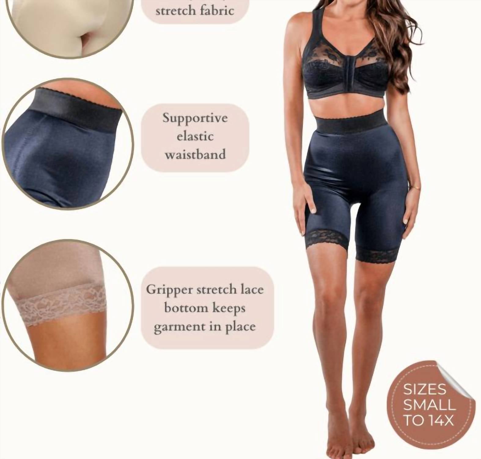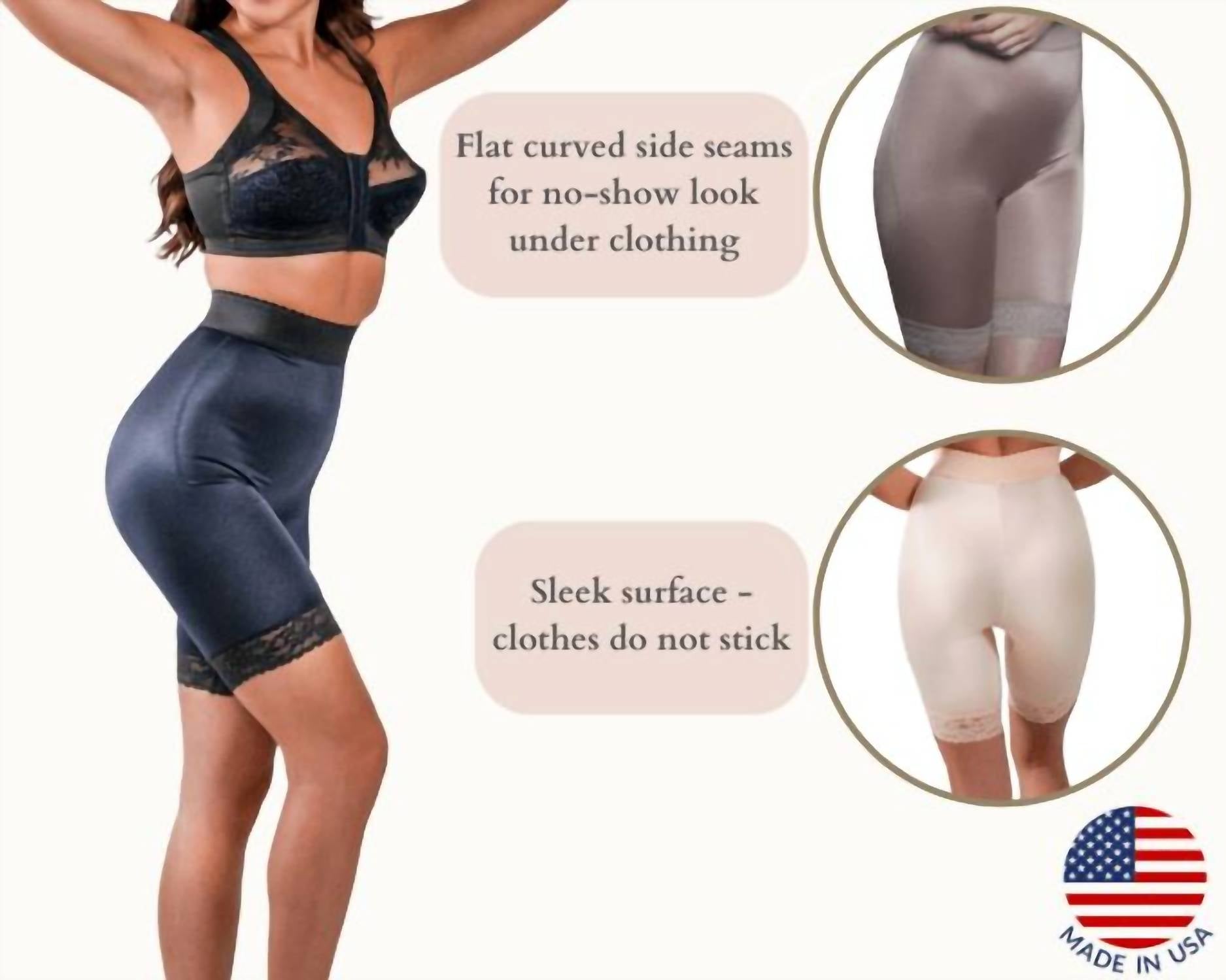 Confidence booster. Discover the Shapewear High-waist Long Leg Pantie Girdle by Rago in a sleek hue, perfect for a minimalist wardrobe. With its high-waist design, it features a 2" tall elastic waistband for superior comfort and a hidden inner front panel offering tummy control. Composed of an 85% nylon and 15% Invista® Lycra® blend, these panties are crafted in the USA. Enjoy seamless sides to ensure a no-show look under clothing and stretch lace leg hems with silicone gripper elastic to prevent ride-up. Care instructions include machine washing warm, line drying, and avoiding bleach and ironing. Ideal for spring travel occasions or a thoughtful Valentine's Day gift.