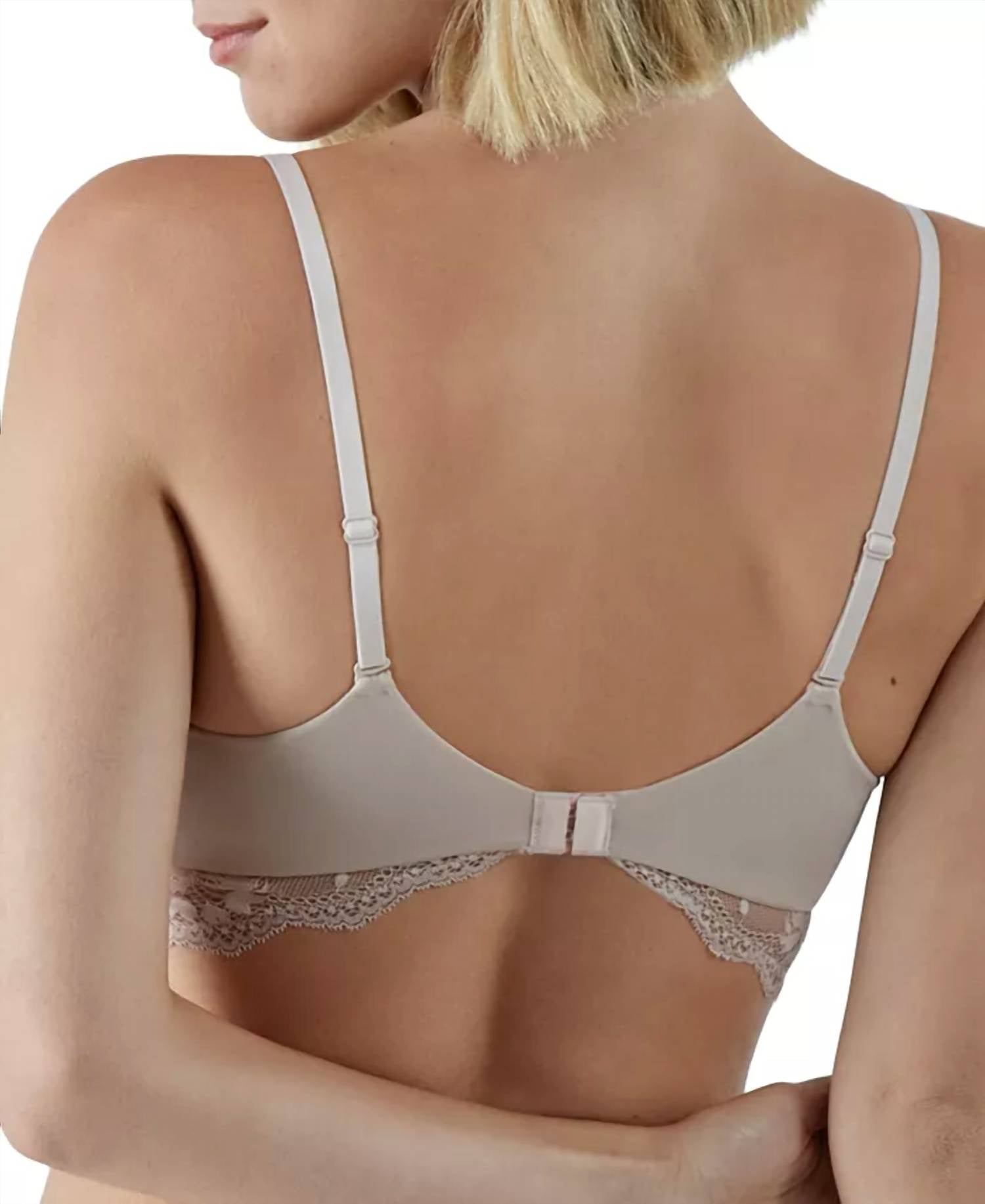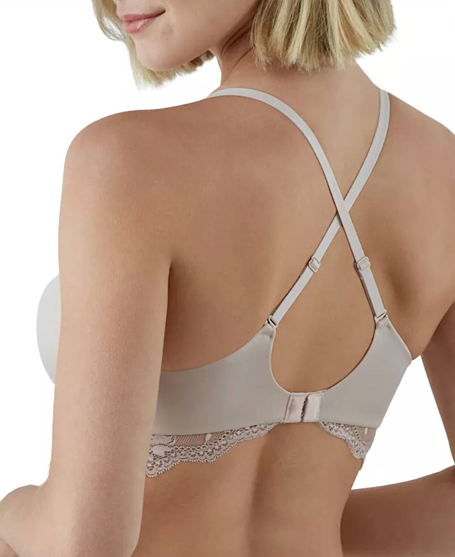 This bra will be your new top-drawer favorite. Scalloped lace trim adds a romantic touch to this super-soft wireless bra that provides a natural lift and flattering shape. Pretty enough for a special occasion, it’s so comfortable you’ll want to wear it every day. This wireless bra was designed with Your Lift™ technology and features plush, natural shaping cups. Plus, its convertible design allows you to wear it traditional or criss-cross for extra versatility. Hand wash. Body: 82% Nylon, 18% Spandex. Lace: 84% Nylon, 16% Spandex.