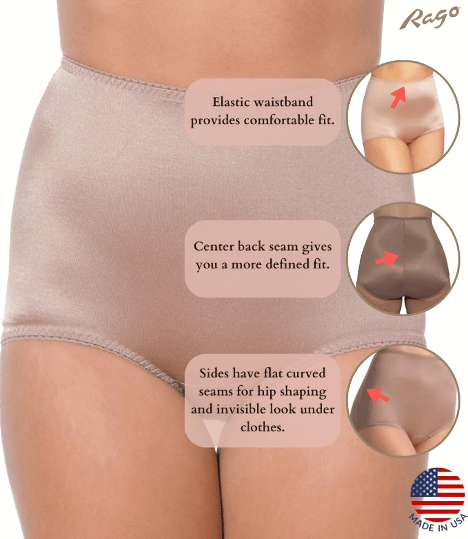 So comfortable you'll want one in every color. Discover the Light Shaping Tummy Control Panty by Rago, designed for those seeking style and comfort. Crafted from a soft blend of 85% nylon and 15% spandex, these high-rise panties offer full rear coverage with a no-show look under clothing. Features like a hidden inner panel for light tummy control, flat curved side seams, and a 100% cotton lined crotch ensure both shaping and comfort. Measurements indicate a 9" rise and elastic details for a custom fit, ideal for everyday wear from travel to special occasions. Care: Machine wash.