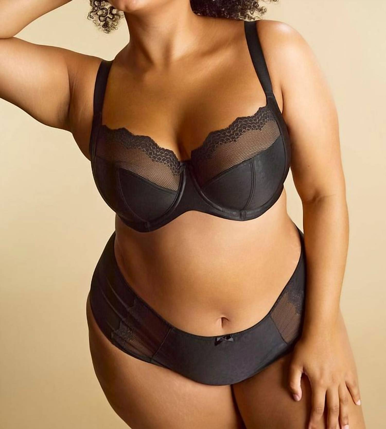 This bra will be your new top-drawer favorite. Introducing the Panache Sculptresse Esme Wired Balcony Bra in striking Black Animal print, a must-have for every wardrobe. This bra is crafted from a blend of 42% Polyamide, 31% Polyester, and 27% Elastane, offering ultimate comfort and style. The four-piece balcony design with stretch lace top cups and rigid bottom cups provides exceptional support and projection for all bust types. Features iconic Sculptresse wings for a smoothing effect, a padded comfort hook & eye closure, and is wired for maximum support. Care: Hand wash only.