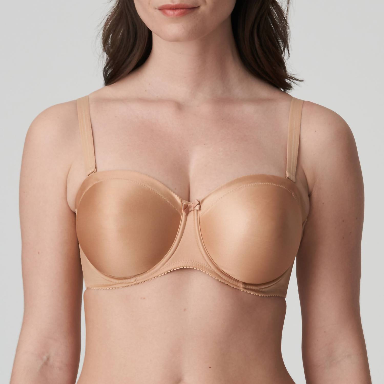 This bra will be your new top-drawer favorite. Discover the PrimaDonna Satin Strapless Bra in a timeless cognac hue, crafted from solid polyamide for a seamless, sumptuous feel. This versatile bra can be worn with or without its detachable straps, with preformed cups that offer support and a smooth, minimized effect. Renowned for its comfort and superior tailoring, this piece highlights your natural curves while ensuring a sophisticated fit. Care: Hand wash only and lay flat to dry, avoiding any twisting or folding to preserve the shape and elasticity.