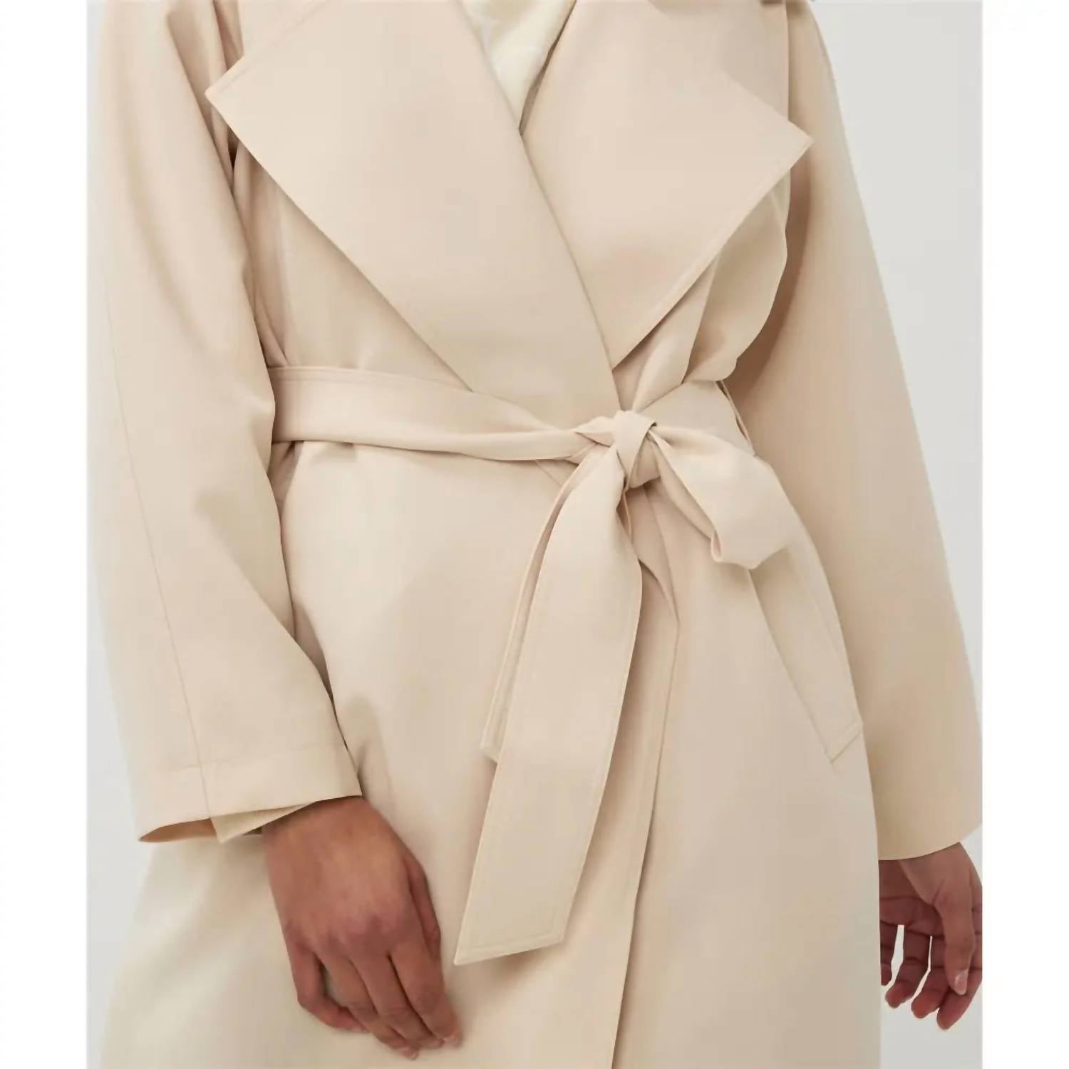 A timeless classic. You'll be reaching for this trench every season. Introducing the Sand Long Sleeve Trench Coat by Esqualo, a sophisticated addition to any wardrobe. This stylish coat features long sleeves and a wrap-style design with a wide lapel collar for a polished look. Made from 100% high-quality polyester, it offers a flattering fit with a self-tie closure and functional side pockets. Designed in solid beige, this lined coat is perfect for fall occasions and can be effortlessly dressed up or down. Care instructions: Hand wash and lay flat to dry.