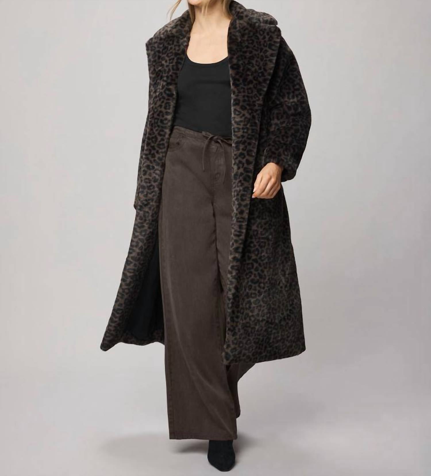 Bundle up in this adorable teddy jacket that'll have you wishing for colder temps. The Lucia Long Fur Coat by Splendid offers a luxurious touch with its long sleeves and plush polyester faux fur exterior. Featuring a dramatic, calf-grazing length, this coat is perfect for making a statement in its timeless leopard print. Designed for versatility, it includes functional side pockets and a convenient tie closure for a chic open-front finish. Ideal for winter getaways, this coat combines maximalist style with ultimate comfort.