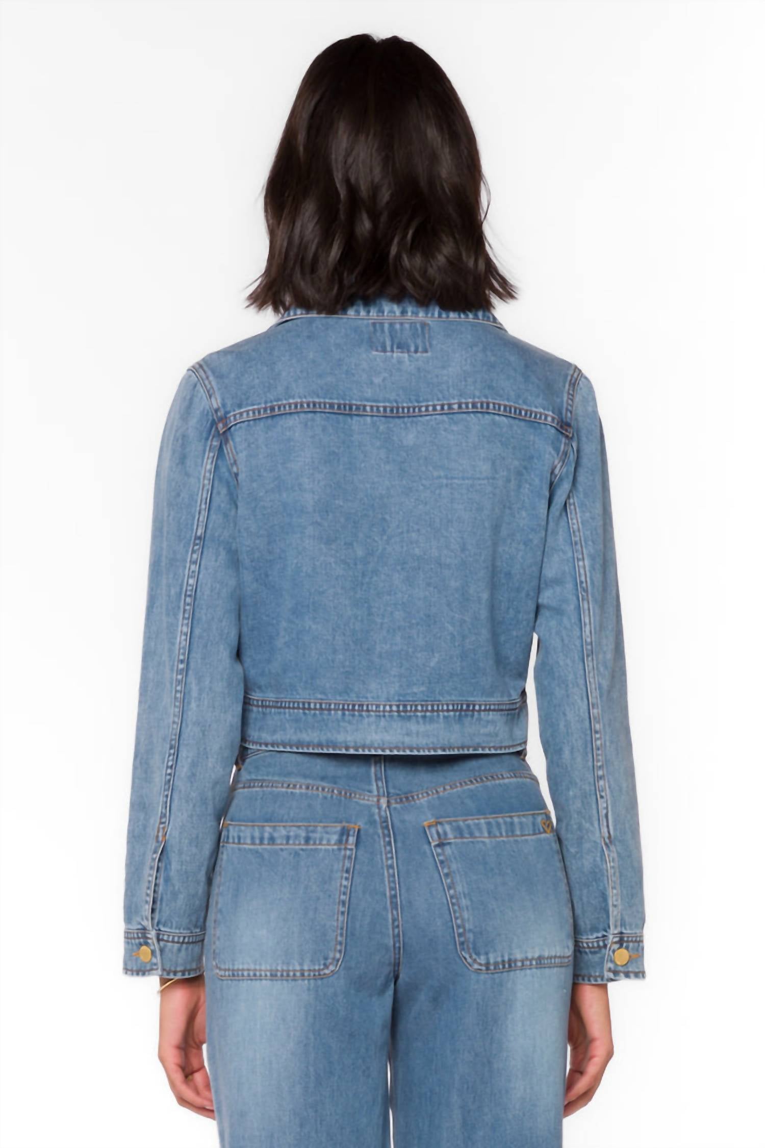 Classic, cool and works with almost any outfit choice. Elevate your layering game with the Mateo Cropped Jacket by Velvet Heart, crafted from solid Tokyo denim for a stylish edge. This women's jacket features long sleeves and a collar neckline, perfect for vacation vibes and tapping into 90s fashion trends. Designed with utility-inspired front flap pockets and gold-tone button closures, it combines practicality with vintage allure. Pair it with high-rise jeans or dresses for a sporty chic look that's ideal for summer adventures.