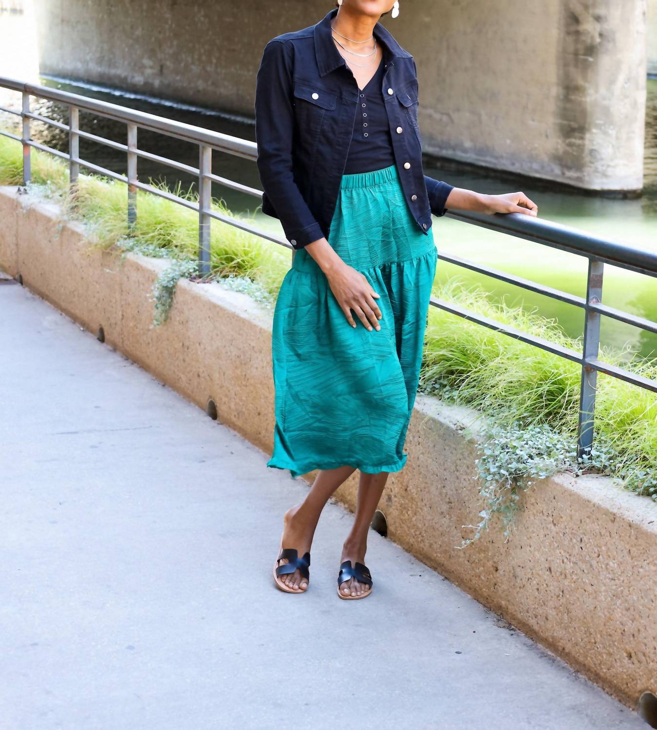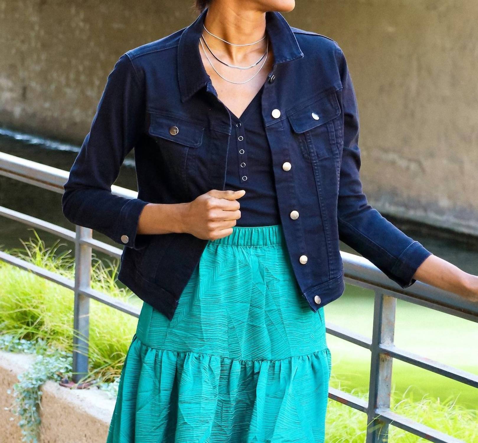 The perfect jean jacket for those slightly crisper days between seasons. Introducing the Women's Cara Jacket by Lola Hats, a stunning piece to complement your streetwear style in classic black. This jean jacket is crafted from a soft, durable denim and features a solid pattern with long sleeves and a collar. Closure is via a button closure, adding to its edgy flair. Perfect for a dinner party or everyday use, this jacket elevates any outfit with its timeless appeal.