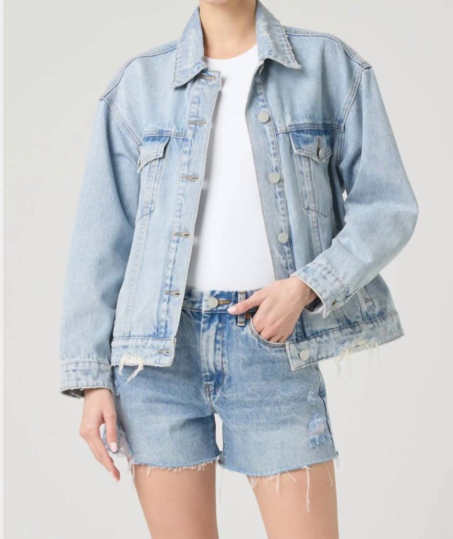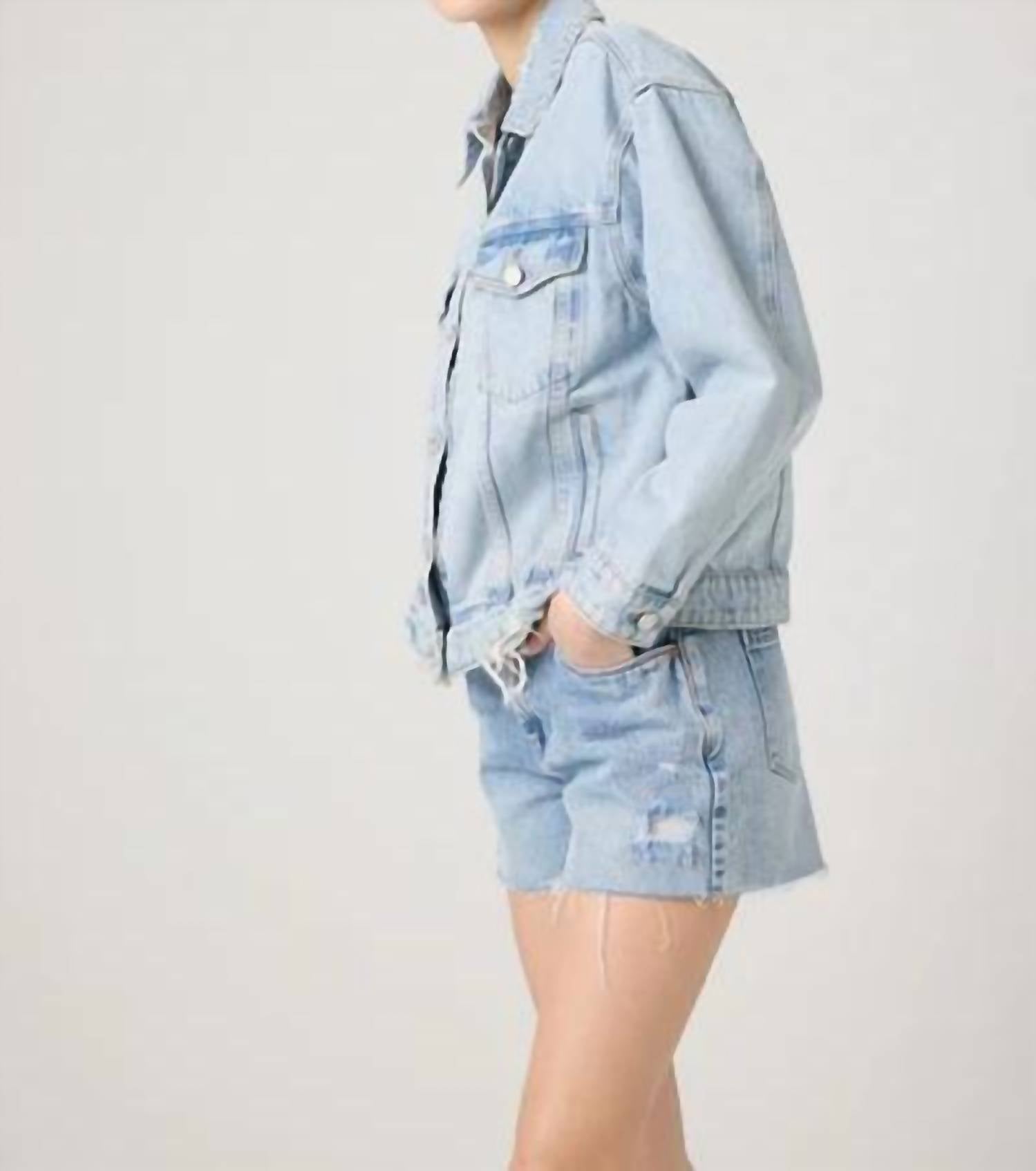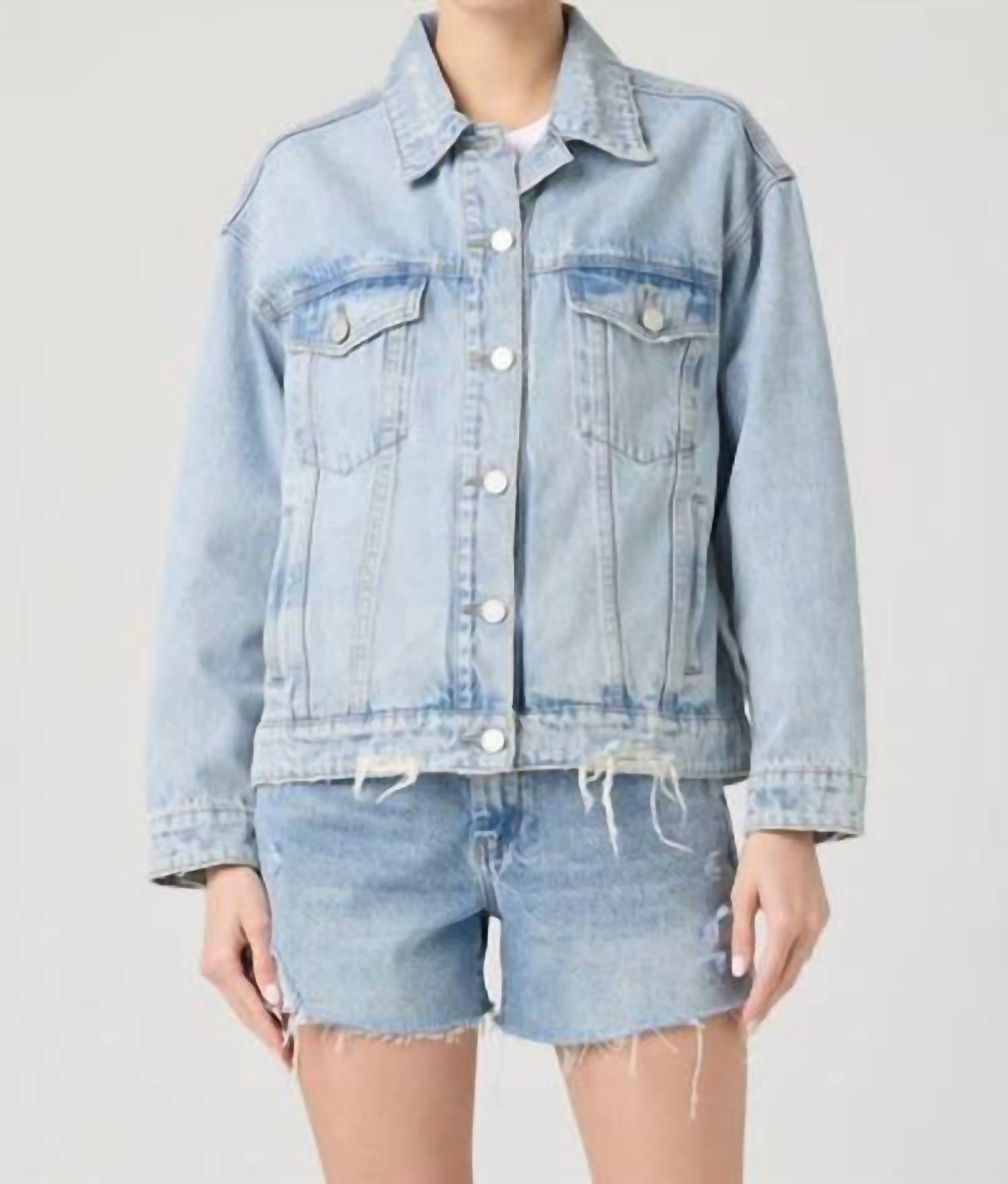 Classic, cool and works with almost any outfit choice. The True Grit Jacket by BLANKNYC is the ideal minimalist addition to your spring wardrobe, perfect for a dinner party. Featuring long sleeves and a classic collar, this jean jacket is crafted entirely from 100% cotton in a chic light indigo hue. It comes equipped with practical pockets and a button closure for a secure fit. Please refer to the garment's tags for specific wash and dry instructions.