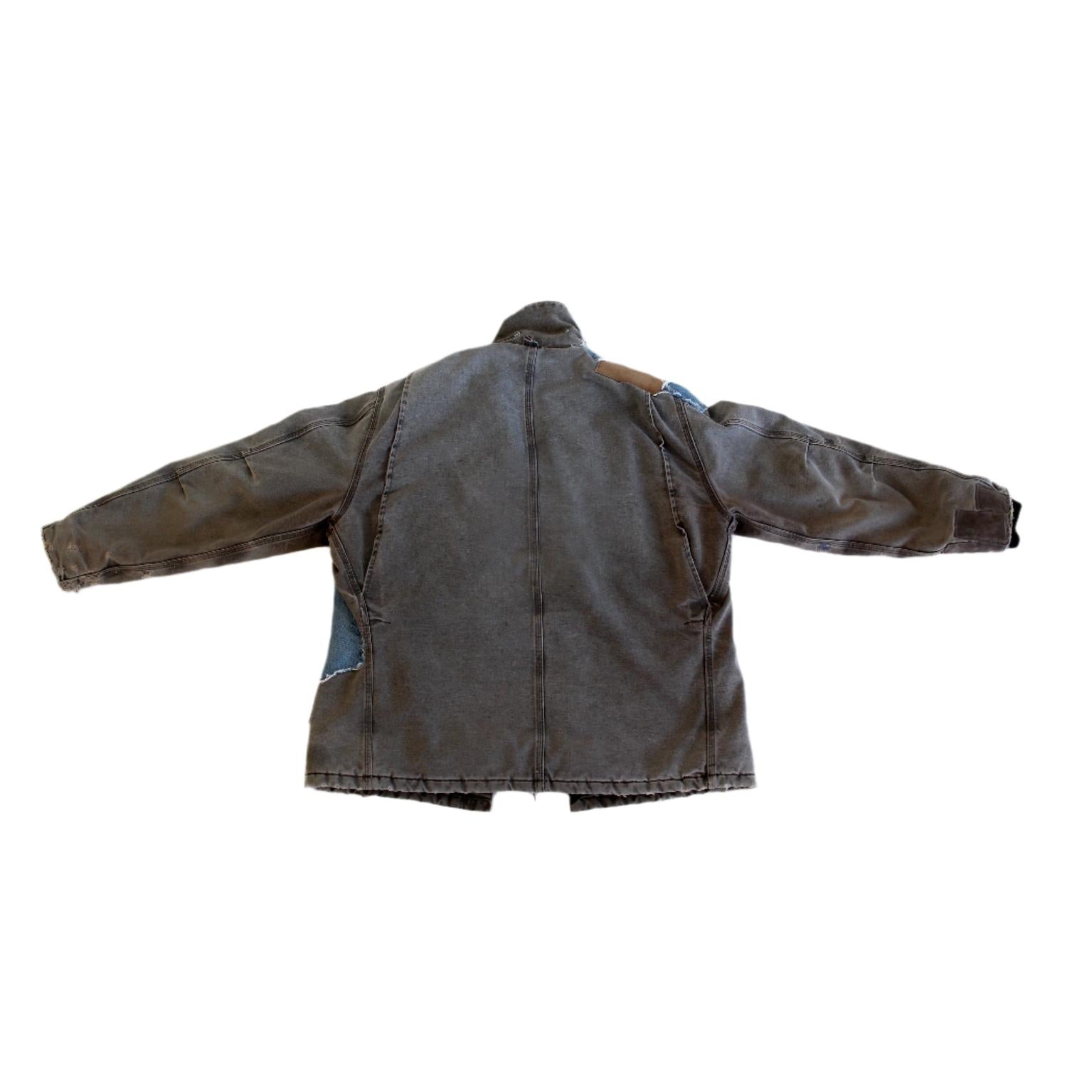 This Women’s MegaTron Jacket is crafted from repurposed denim, featuring a textured pattern and modern zip closure with a hooded neckline. Handcrafted for individuality, each piece shows slight variations, ensuring a one-of-a-kind style.