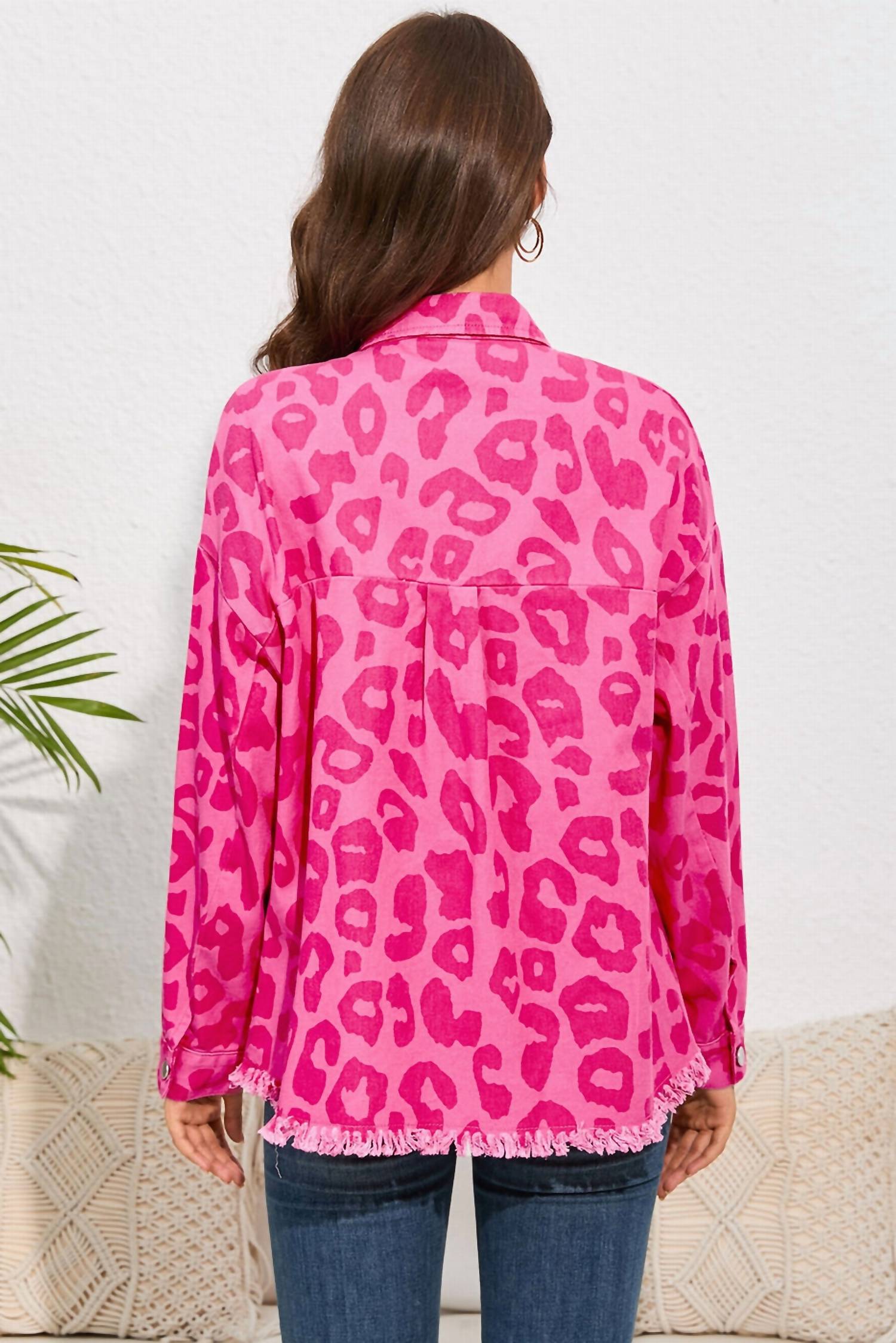 The perfect jean jacket for those slightly crisper days between seasons. The Button Cuffs Raw Hem Jacket by Shiying Fashion is the perfect blend of comfort and style for any casual occasion. Crafted from 100% cotton, this lightweight pink jean jacket features long sleeves with button cuffs, adding a unique touch. It includes practical pockets and a collar neckline, making it ideal for Valentine's Day or homecoming events. Closure: Button closure.