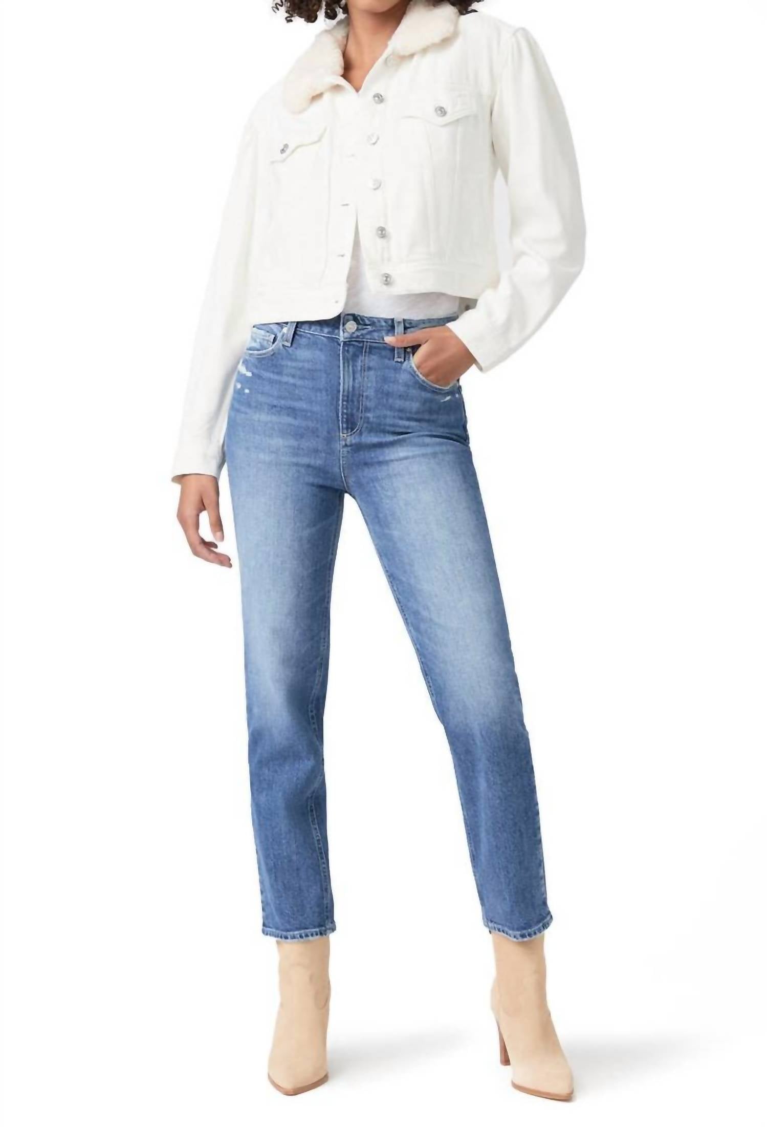 Featuring a tonal ecru shearling collar, a cropped fit, long puff sleeves with cuffs, and a silver front button closure. Materials: 73% Cotton, 27% Rayon with 60% Polyester, 40% Acrylic Faux-Shearling Collar. Machine wash. True to size. 20" Length. Made in Turkey.