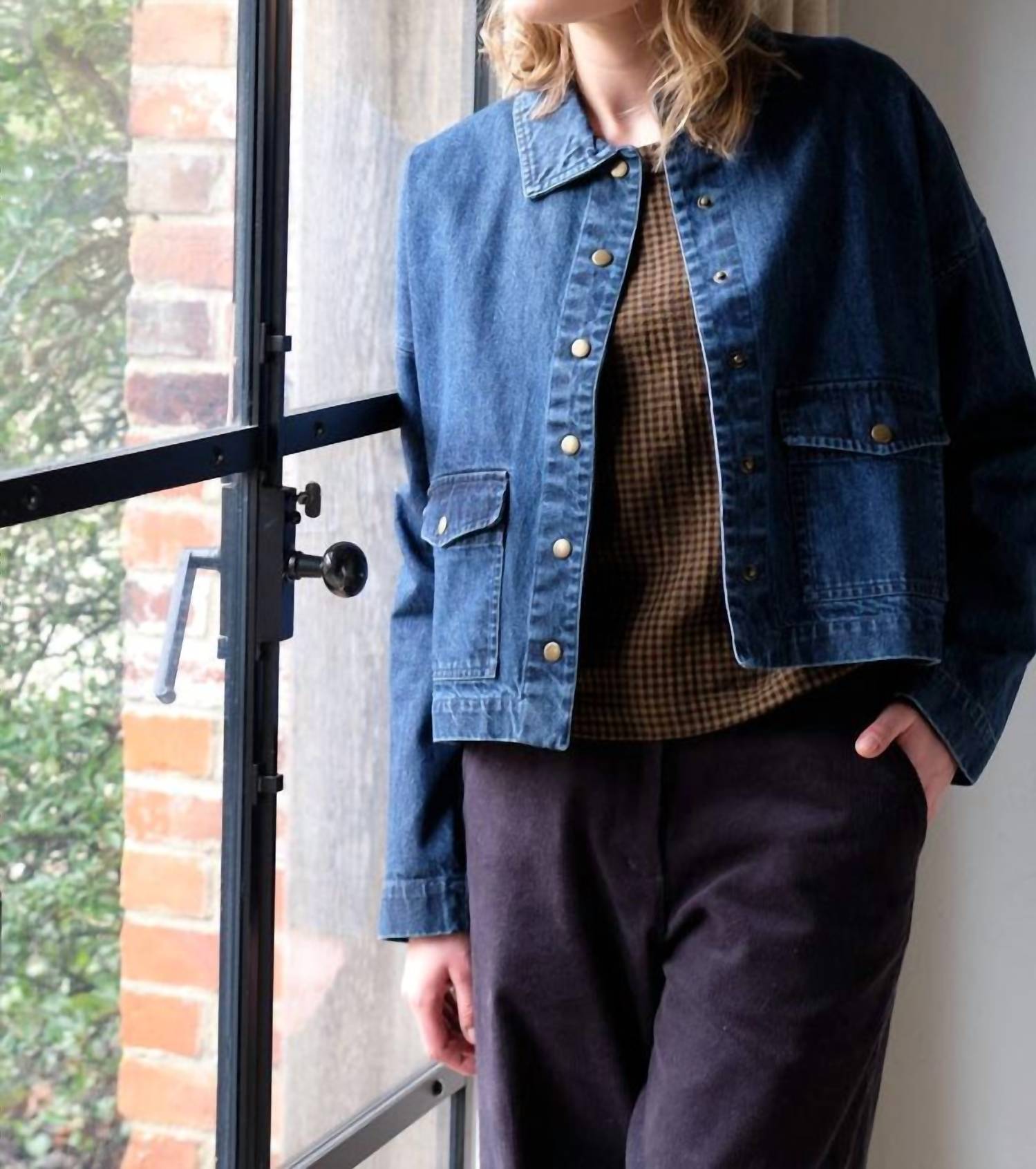 The perfect jean jacket for those slightly crisper days between seasons. Introducing the Maya Relaxed Jean Jacket by BIBICO, crafted for effortless style and functionality in a solid heavy denim. Featuring full-length sleeves, it's expertly made from 100% cotton midweight denim, providing comfort and durability. Originating from a Fair Trade cooperative in India, this jacket boasts a practical button closure and two deep patched pockets for added utility. Care for it with a machine wash and enjoy the convenience of tumble drying.