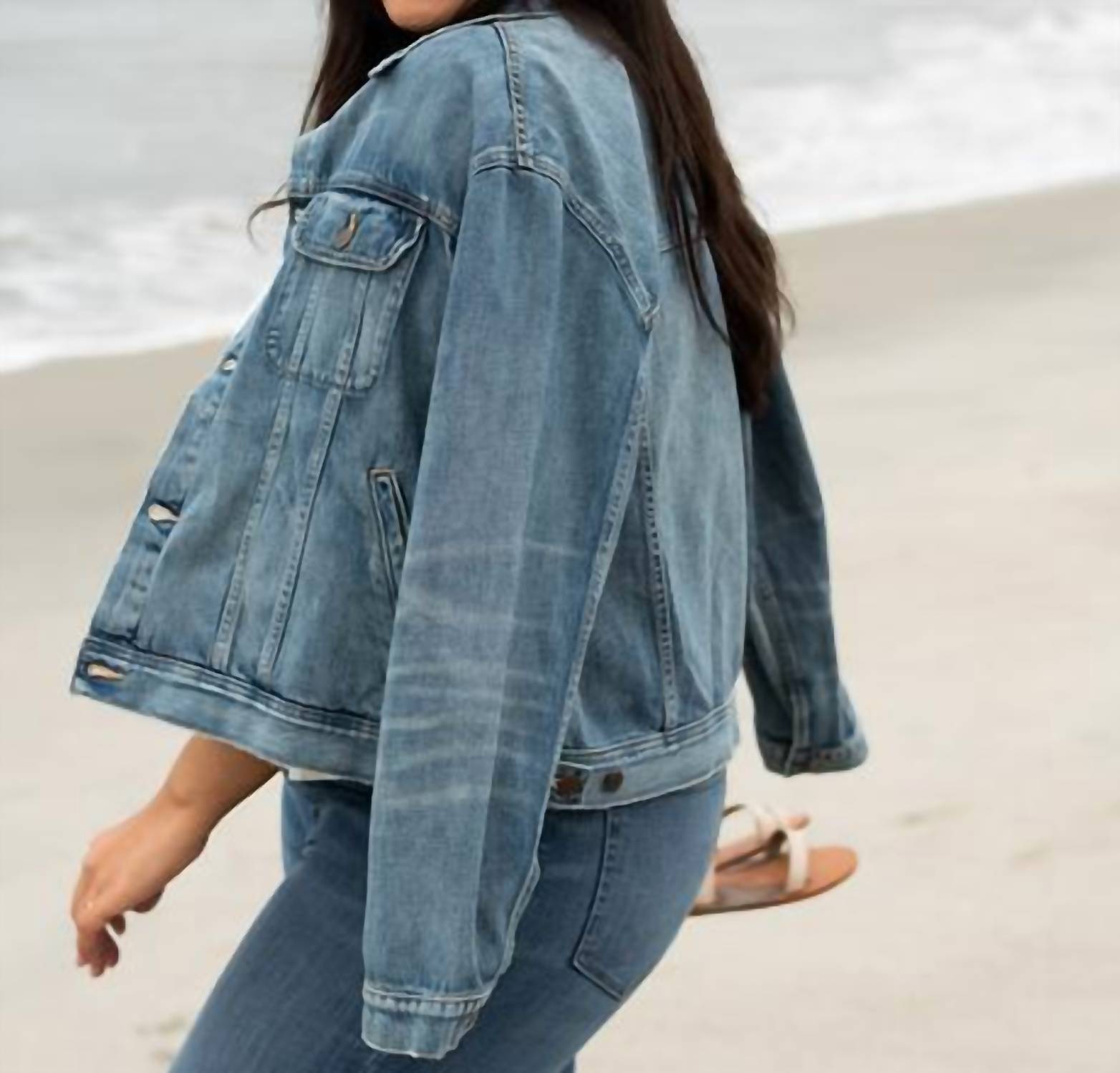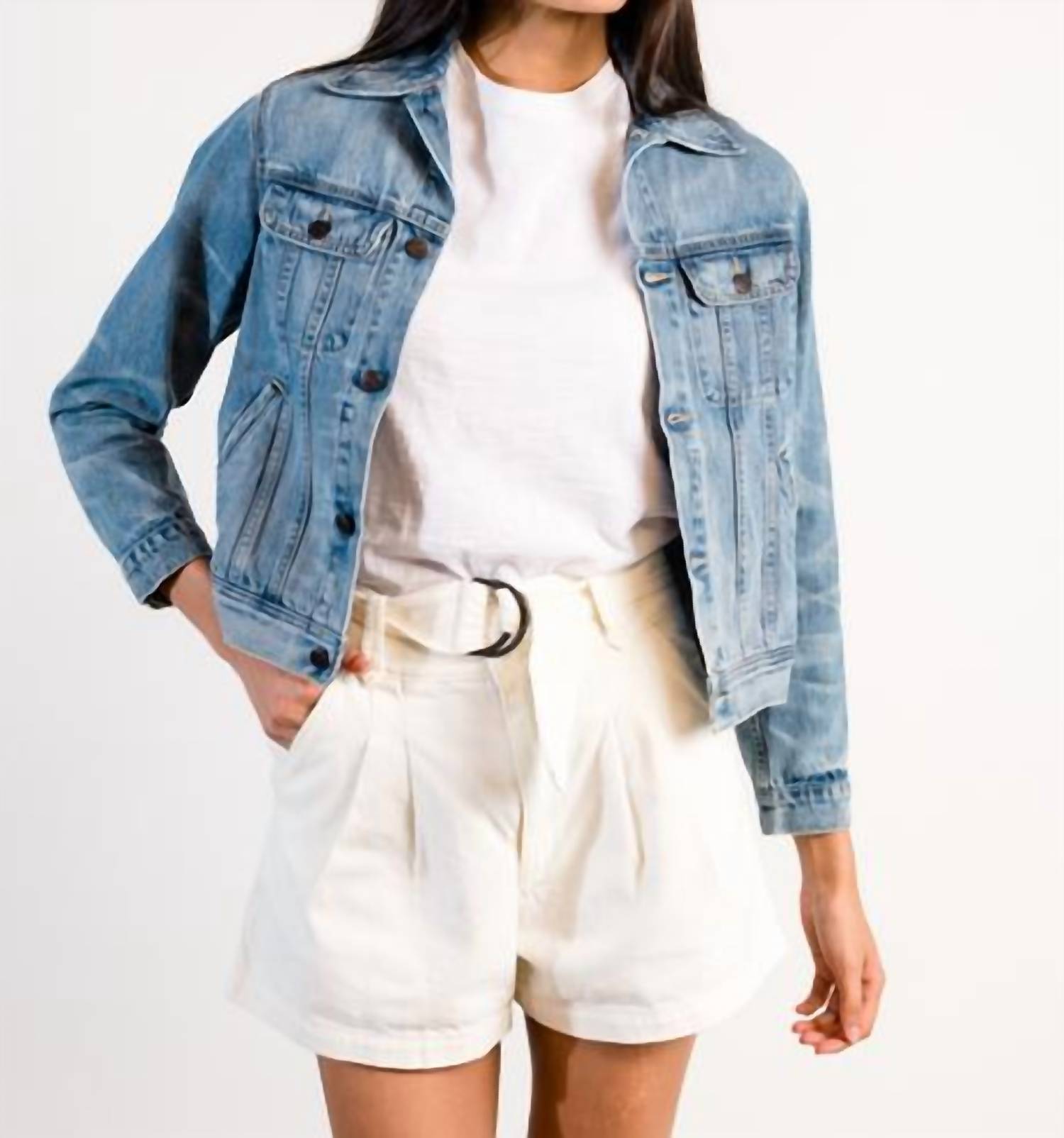 Classic, cool and works with almost any outfit choice. Introducing the Bailey Classic Jacket by ABLE, a staple in light blue wash that effortlessly elevates any outfit. Inspired by vintage denim, this women’s jacket is crafted from a soft cotton blend composed of 64% cotton and 36% lyocell, and features long sleeves for a relaxed fit. With a classic button closure and hitting at the high-hip, it is perfect for pairing with high-waisted denim or dresses. Made in Mexico with attention to detail like dark copper hardware and classic gold threads, this piece can be machine washed cold and tumble dried low for easy care.