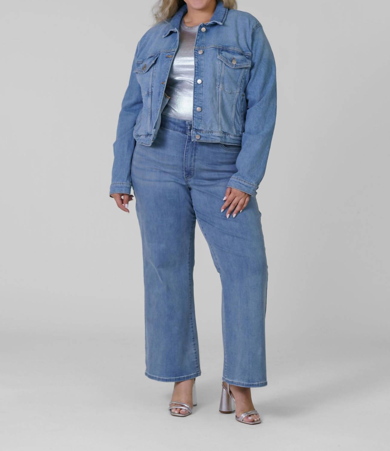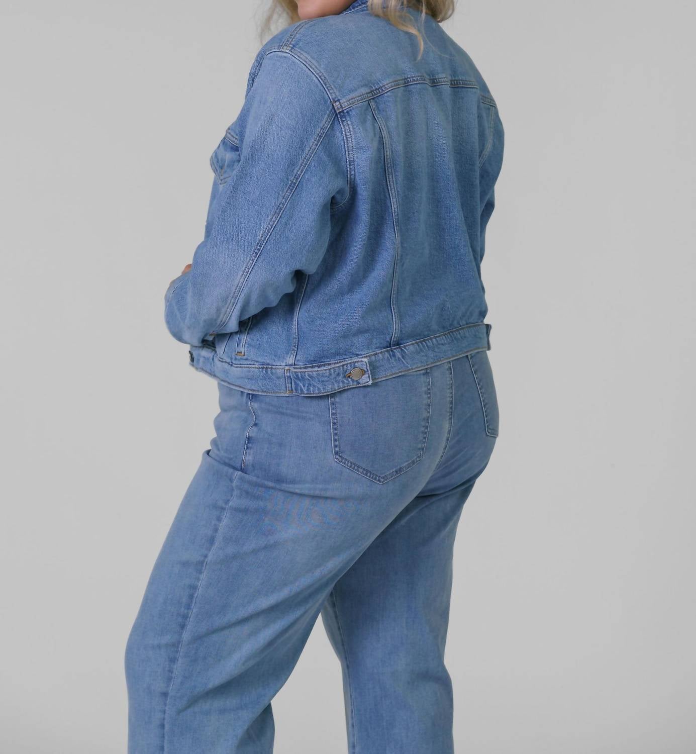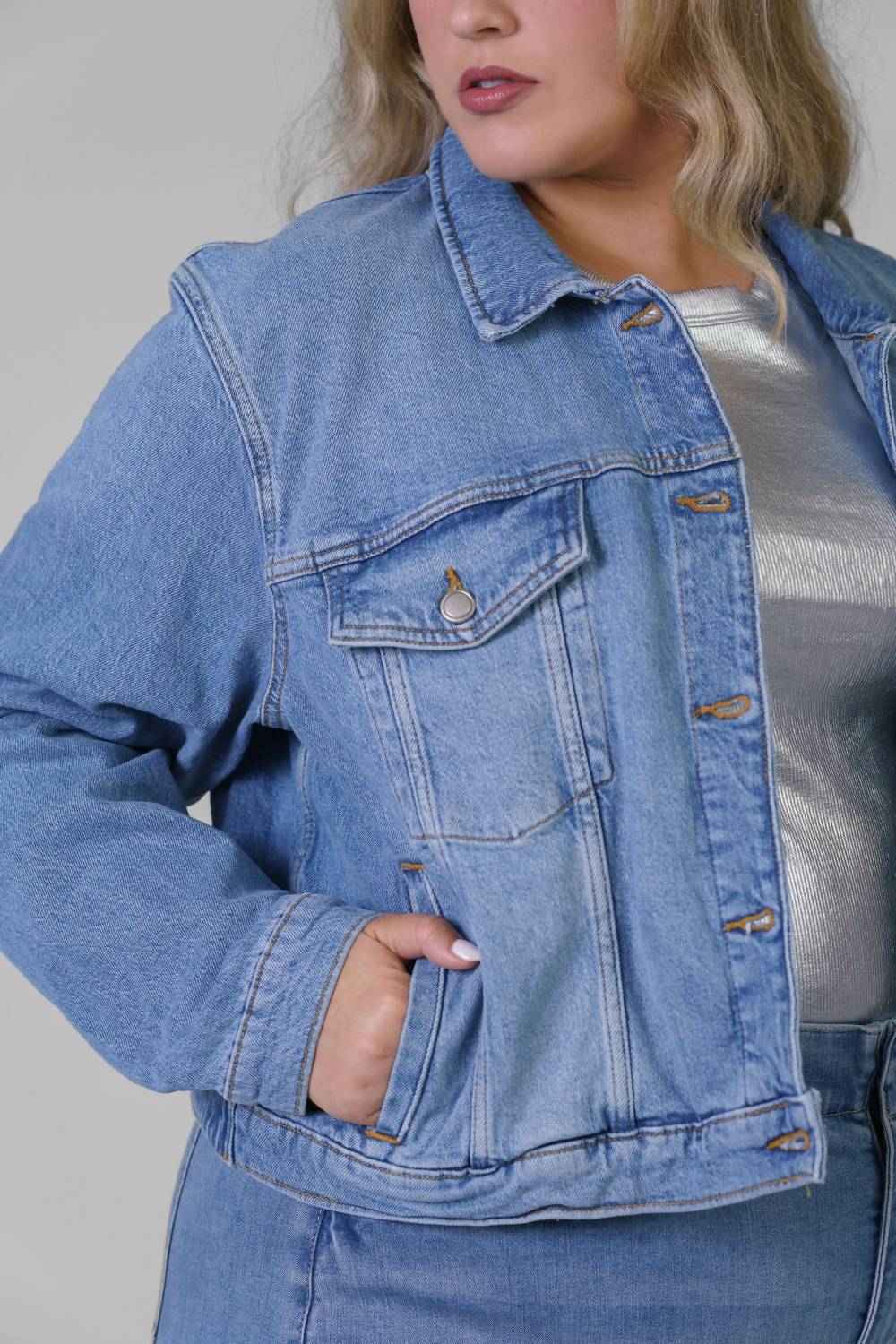 Throw this adorable jacket over just about anything for an effortlessly stylish look. Introducing the Committed To Fit Button Down Jacket by GOOD AMERICAN, a preppy essential for your fall wardrobe. This light-wash indigo piece features a solid pattern with long sleeves crafted from 100% comfortable cotton, offering a classic trucker jacket silhouette. Designed with practicality in mind, it includes pockets and a button closure, making it ideal for travel or Thanksgiving gatherings. Care for your jacket by hand washing and line drying to maintain its quality, available in plus sizes for women.