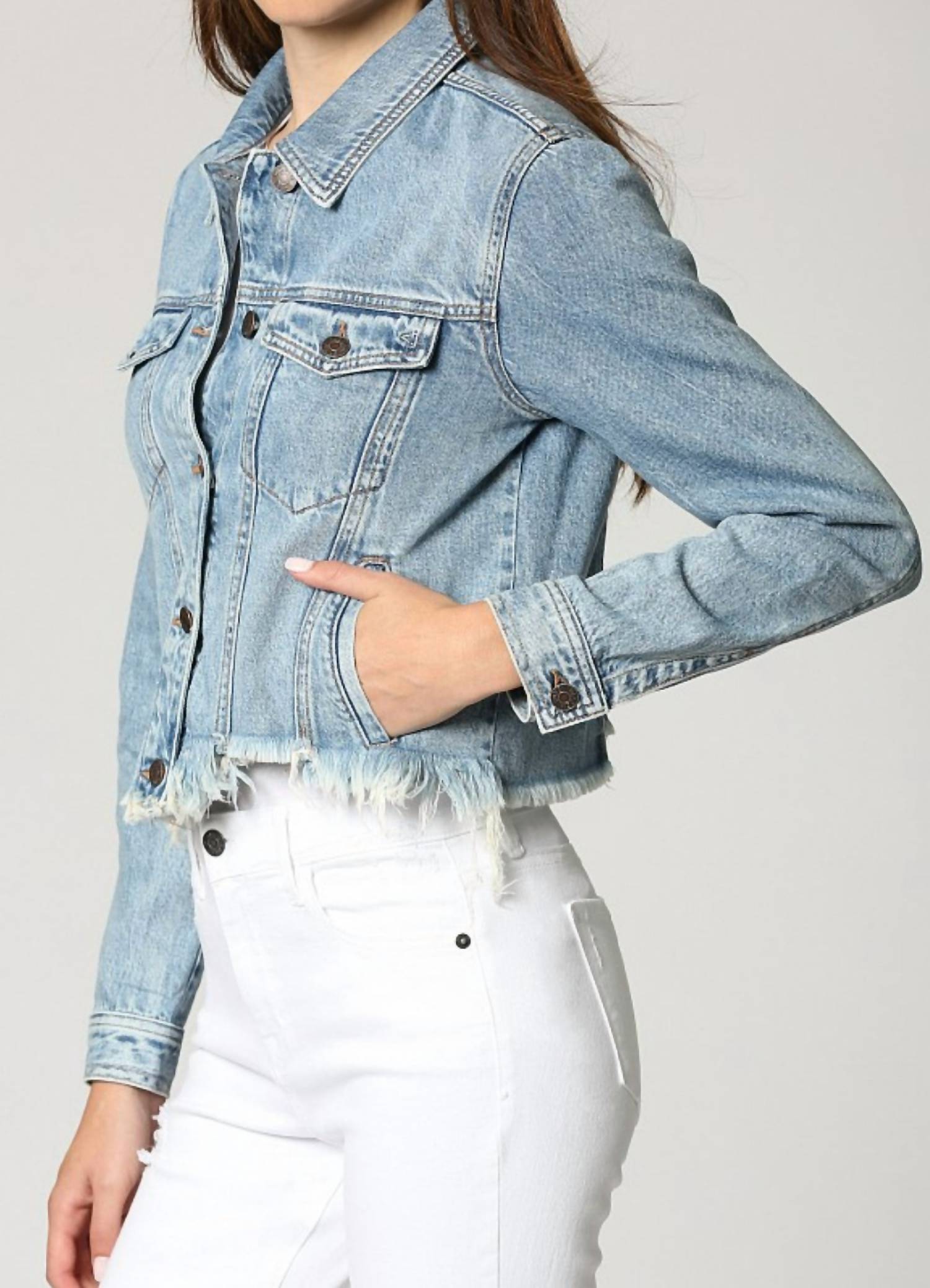 Throw this adorable jacket over just about anything for an effortlessly stylish look. The Kelso Distressed Fray Jacket by HIDDEN is your go-to jean jacket for the season, offered in a trendy medium wash. With long sleeves and a classic collar, this versatile piece features a solid pattern and practical pockets. Made from a blend of 73% Cotton and 27% Rayon, it ensures softness and comfort for all your streetwear looks. Closure: Button closure. Care: Machine wash.