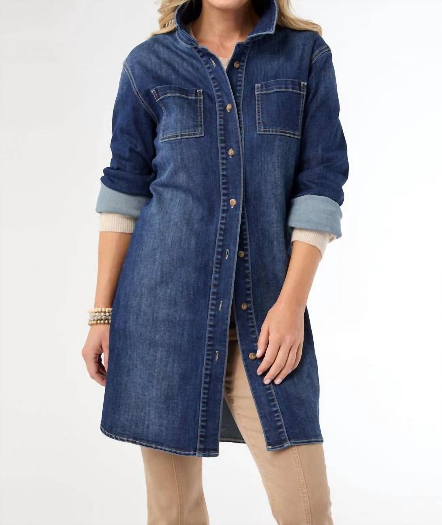 Classic, cool and works with almost any outfit choice. Discover the Coco + Carmen Dark Denim Shacket, designed for versatility and comfort. This women's shacket features long sleeves and is crafted from Bambu Soft fabric, ensuring a lightweight, breathable, and stretchable experience. With a button closure, it combines the structure of a jacket and the cozy feel of a shirt, perfect for layering across seasons. Easy to care for, simply machine wash and tumble dry for effortless maintenance.