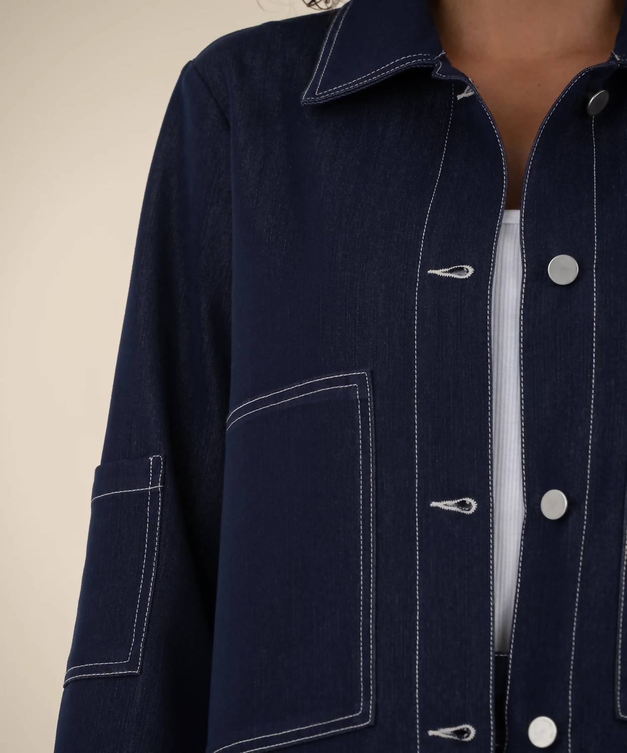 Throw this adorable jacket over just about anything for an effortlessly stylish look. The Jolene Collar Denim Jacket by KUT FROM THE KLOTH brings a sleek, tailored look to your wardrobe with its dark navy denim and white stitching detail. Featuring long sleeves and a collared neckline, this jacket is crafted from a blend of 74% polyester, 20% viscose, and 6% spandex for a perfect fit. Its button closure and distinctive patch pockets, including a unique pocket on the right sleeve, add a contemporary flair to this classic piece. Care for your jacket easily as it is machine washable, making it a practical yet stylish addition to your fall streetwear collection.