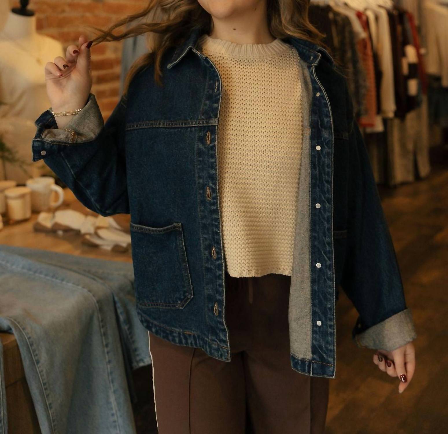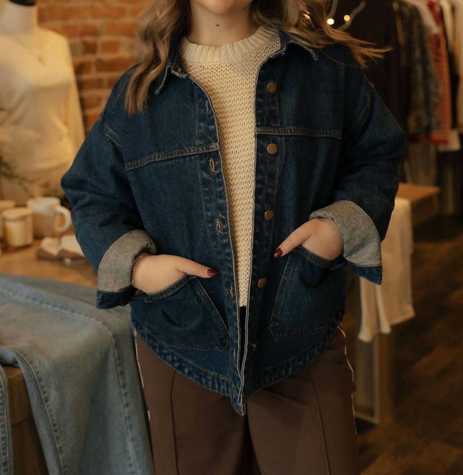 Throw this adorable jacket over just about anything for an effortlessly stylish look. Embrace casual elegance with the Denim Barn Jacket by OLIVACEOUS, crafted for streetwear lovers from 100% cotton in a classic blue hue. This women's jean jacket features a solid pattern, long sleeves, and a stylish collar, perfect for a Thanksgiving outing or a fall vacation. Enjoy the convenience of functional pockets and a timeless button closure. For easy care, machine wash and tumble dry.