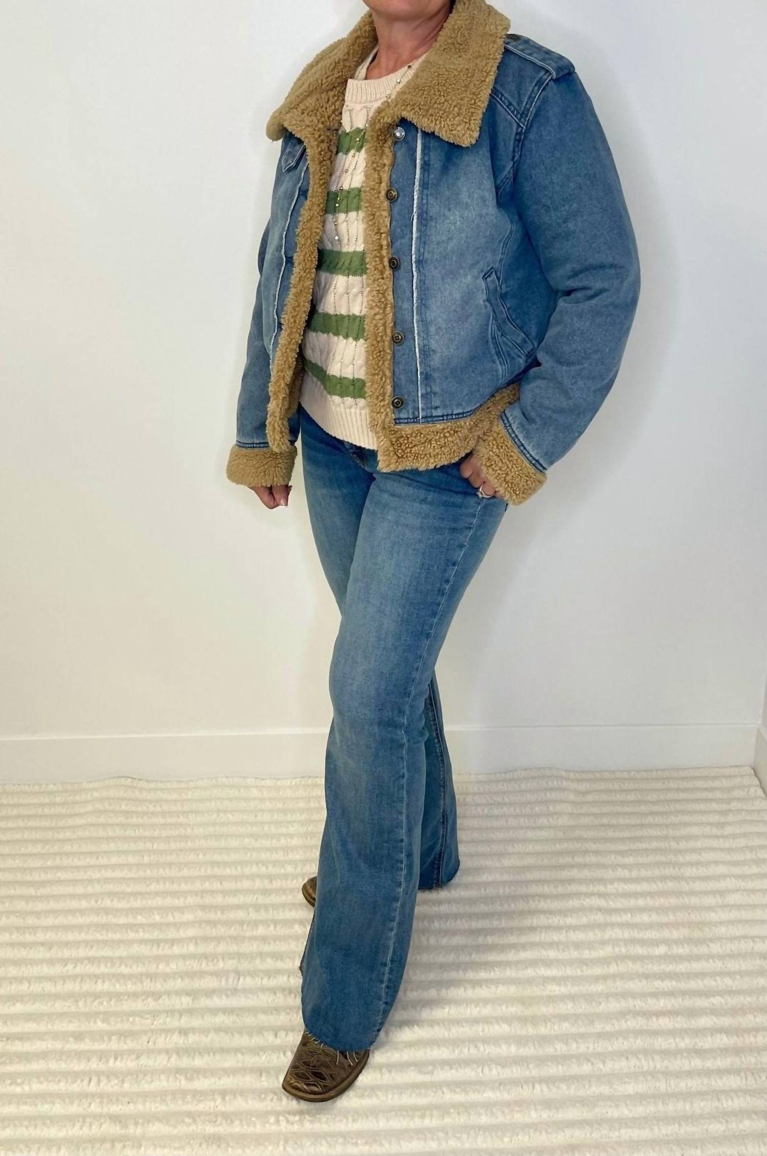 The perfect jean jacket for those slightly crisper days between seasons. Introducing the Henrietta Jacket by Thread & Supply, a perfect blend of vintage style and cozy warmth in classic denim. This long sleeve piece is crafted from 100% cotton with a soft sherpa fur lining, ensuring comfort and durability. Featuring a practical button closure and functional pockets, it is an essential for everyday adventures. Care: Machine wash cold. Deanne is wearing the medium.