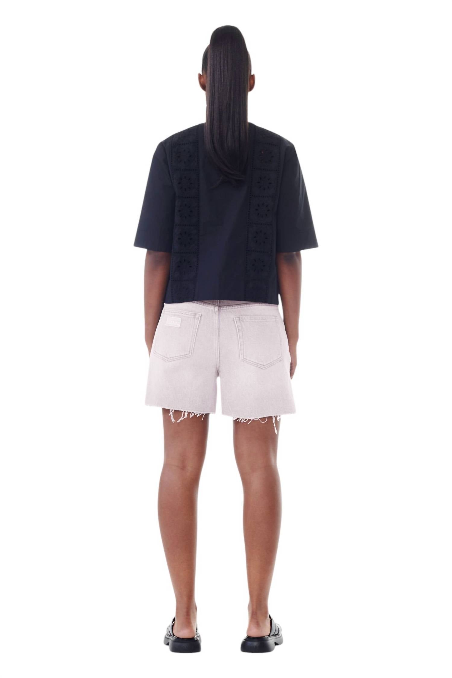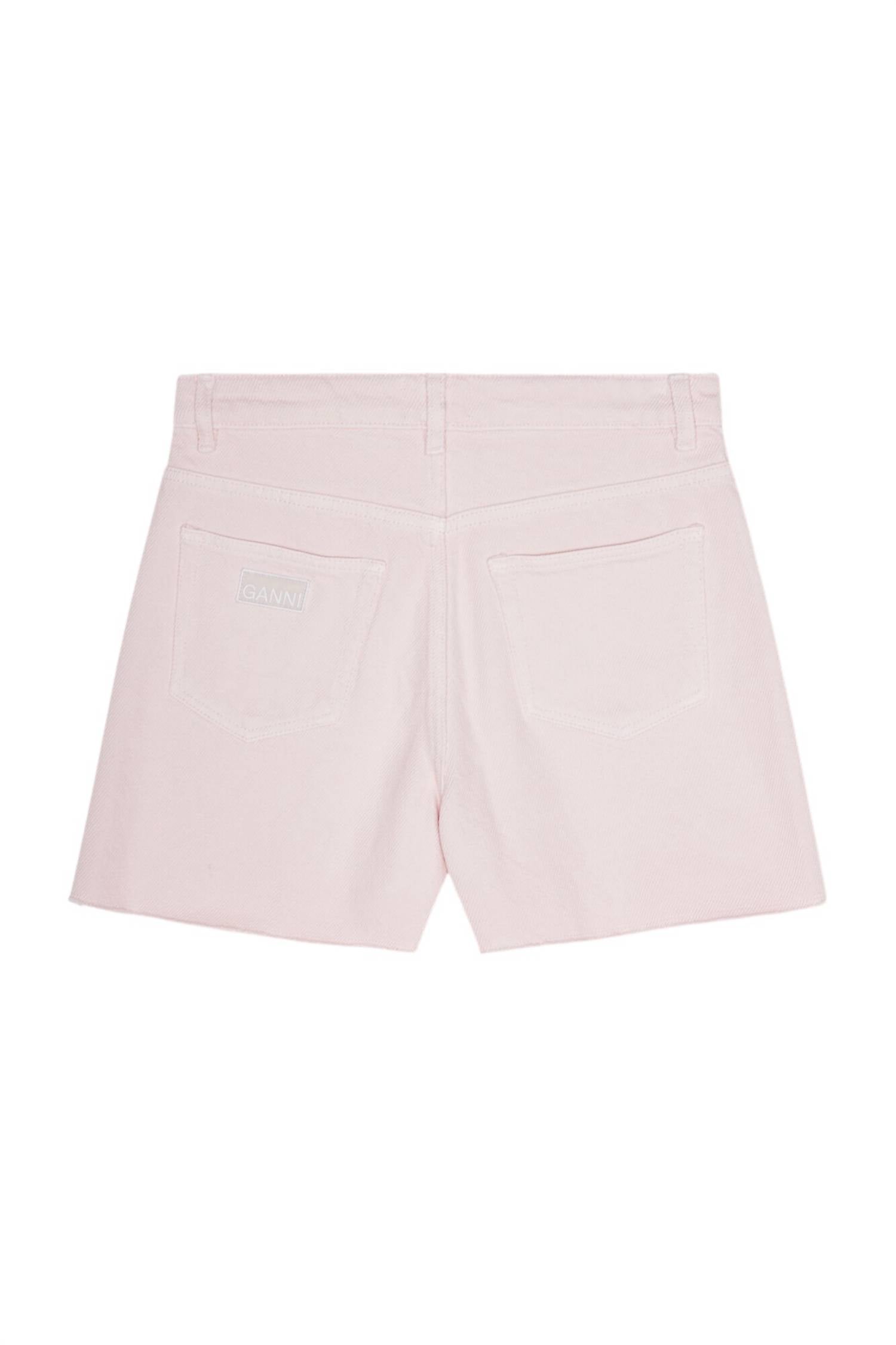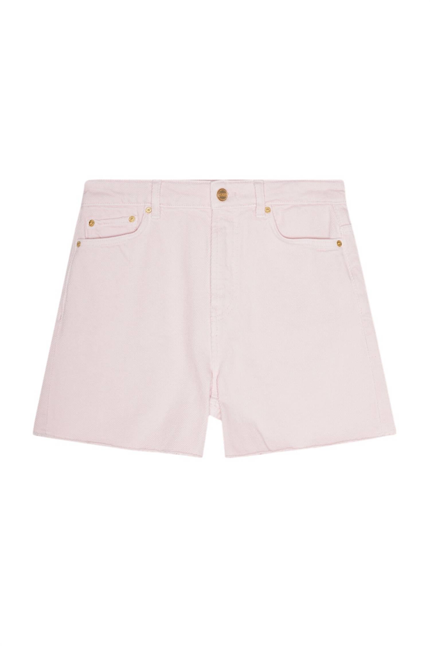 Not only cute but extremely comfortable. The jean shorts you will be reaching for all season long. Introducing the Frayed Edge Cotton 5-Pocket Denim Shorts by GANNI, where contemporary design meets casual comfort. Crafted from 100% organic cotton, these solid pink jean shorts highlight a classic 5-pocket style complemented by stylish raw edges. Made in Turkey, they feature a zip and button closure ensuring both durability and style. Perfect for any casual outing, these shorts are easy to care for with machine wash instructions.