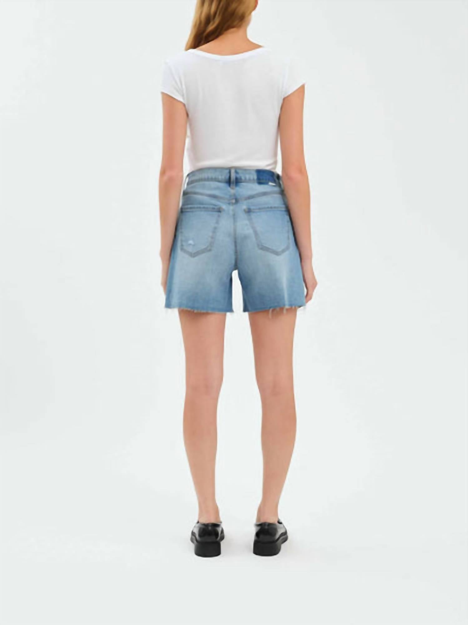 Jean shorts so versatile, you can literally wear them with anything. Introducing the Sundaze Short High Rise Long Short by DAZE, perfect for your summer travels in a stylish blue hue. Crafted from solid denim, these women's jean shorts offer a high-rise fit with the practicality of pockets. The button closure provides both style and easy wear. Embrace minimalist fashion with this essential addition to your summer wardrobe.