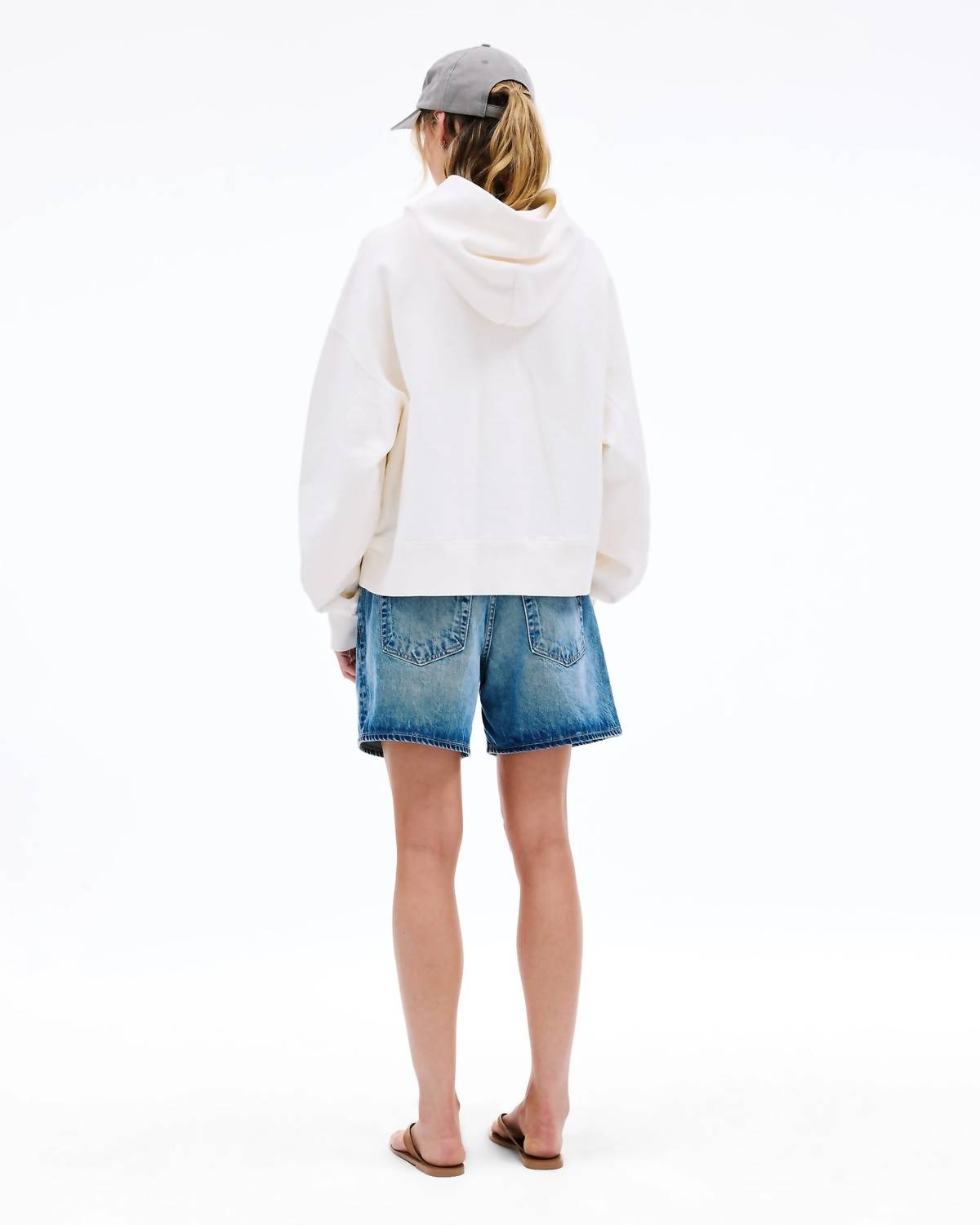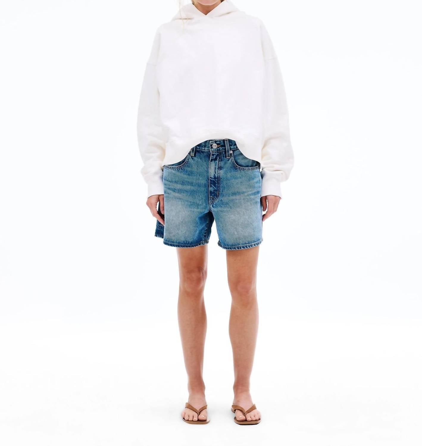Not only cute but extremely comfortable. The jean shorts you will be reaching for all season long. Introducing the Walker Denim Short by SLVRLAKE, a relaxed high-rise short that perfectly encapsulates effortless style. Crafted from 100% pure cotton, these shorts feature a medium stone wash with hand-detailed subtle whiskering for a vintage-inspired look. With a button closure and solid color, these shorts offer both comfort and quality. Care is simple with machine wash and tumble dry instructions, making them ideal for your summer vacation wardrobe.