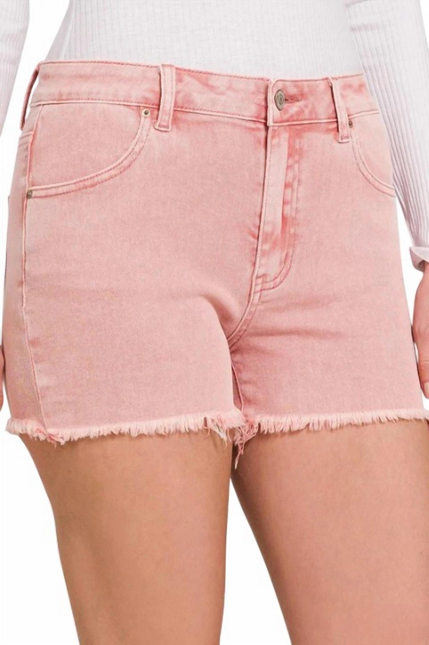 Zenana - Acid Washed Frayed Hem Mid Rise Shorts