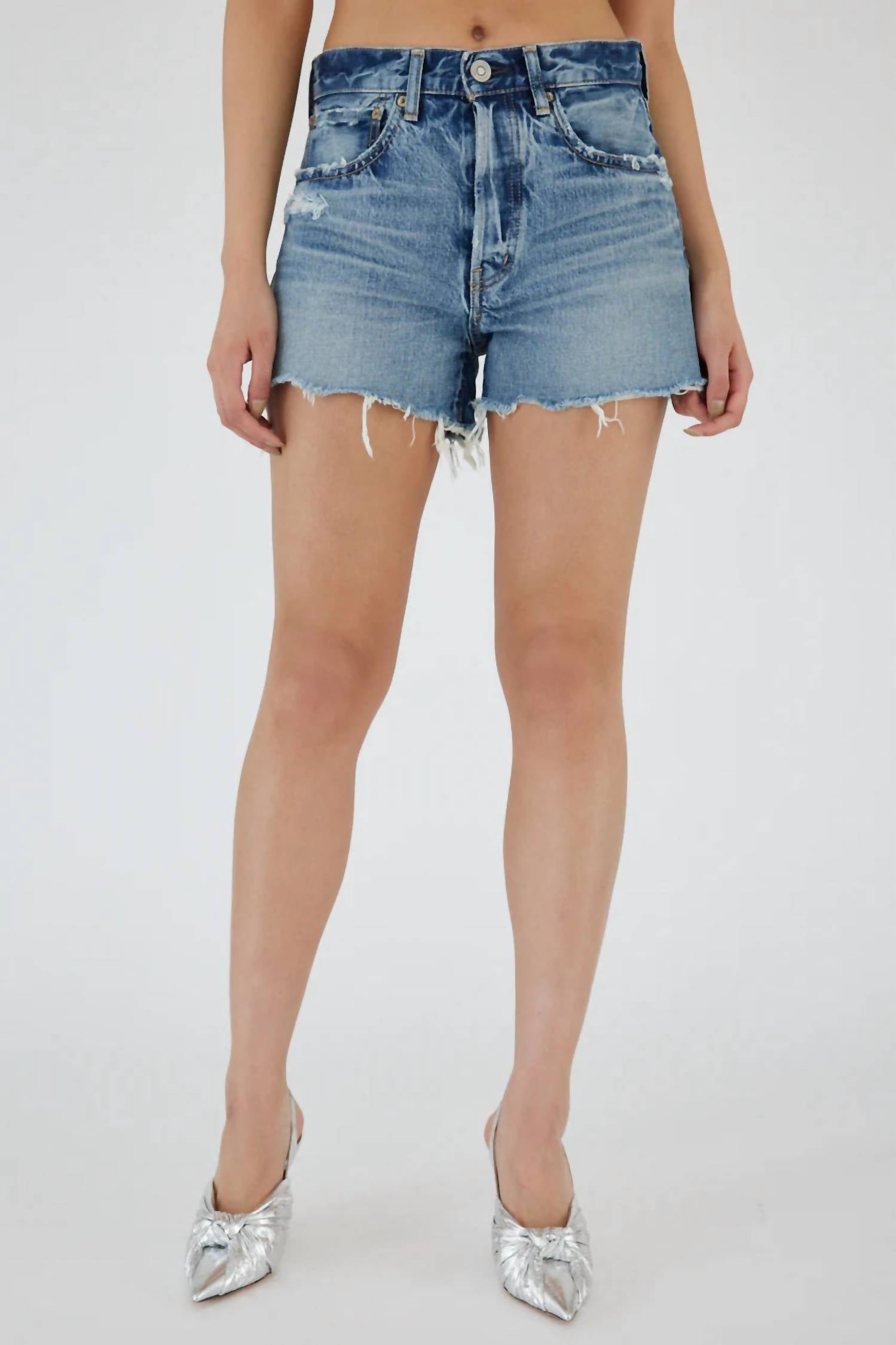 Not only cute but extremely comfortable. The jean shorts you will be reaching for all season long. Introducing the Elam Shorts by Moussy, a timeless blend of craftsmanship and style from Japan. These high-rise, blue jean shorts are crafted from 100% cotton non-stretch denim, featuring a mid-weight feel and side slit detail. With a button closure, they fit true to size and offer dimensions like a 26.6-inch waist and 3-inch inseam. Care for them with machine wash on a delicate cycle, avoid tumble drying, and use a hot iron with a press cloth for best results.