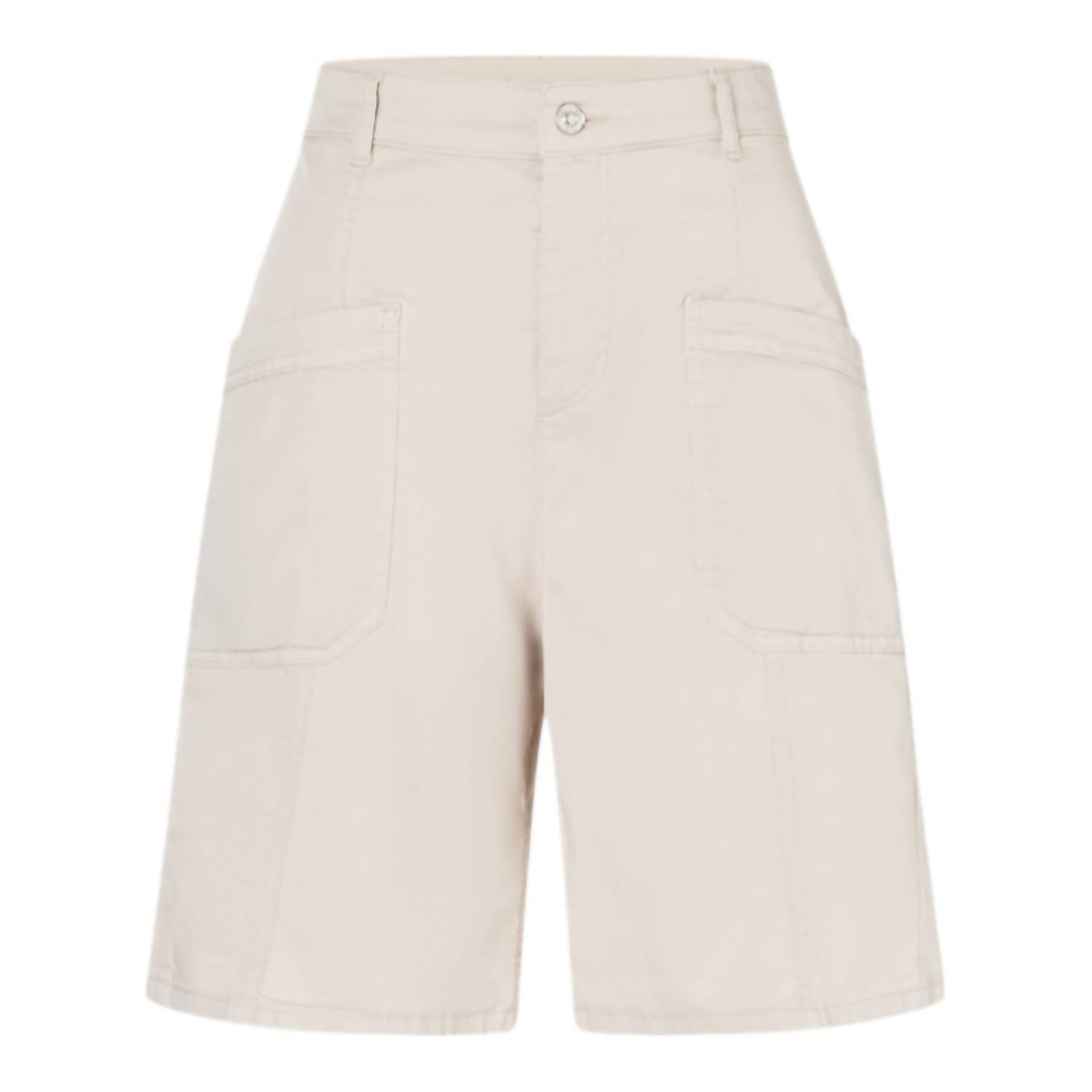 Jean shorts so versatile, you can literally wear them with anything. Discover the Women's Worker Shorty by MAC, an ideal blend of comfort and style in a chic light beige hue. Crafted from a cotton blend, these solid patterned shorts offer both durability and a comfortable fit. Designed with pockets for added functionality, they feature a button closure for a secure fit. Perfect for summer, these shorts effortlessly pair with both light and colorful tops.