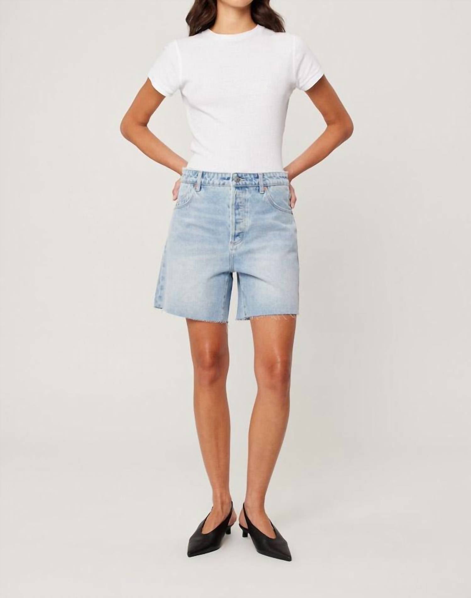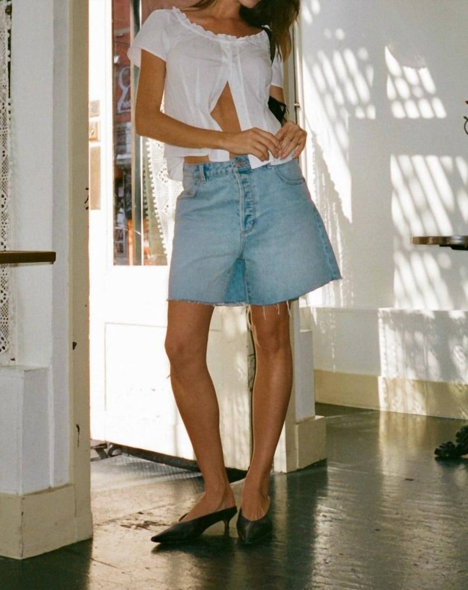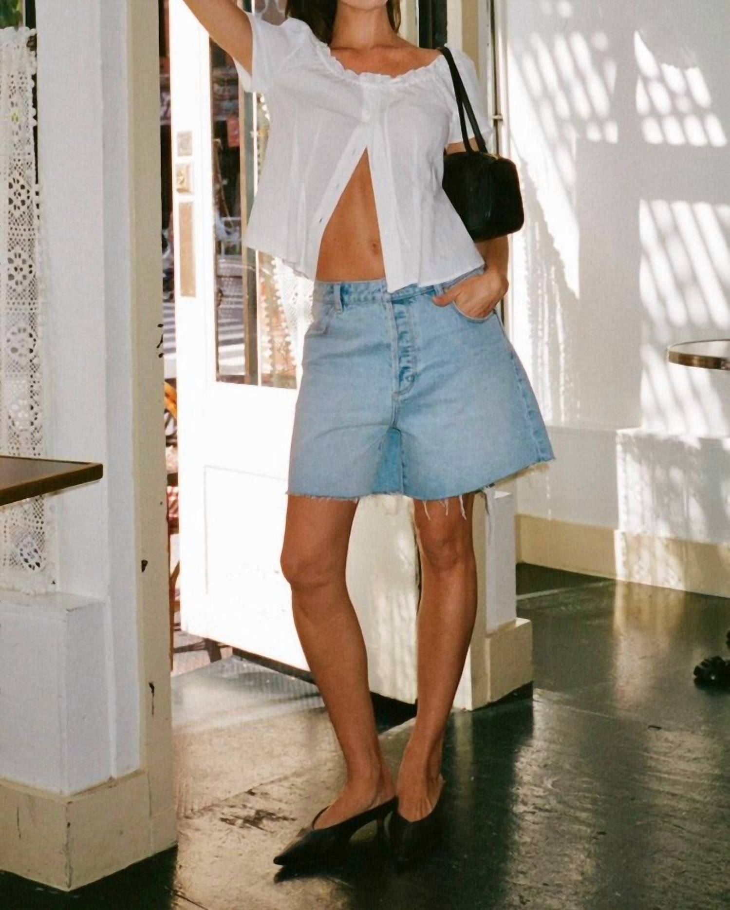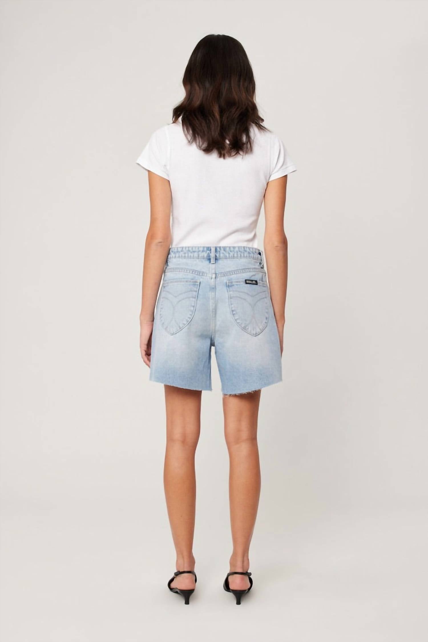 Not only cute but extremely comfortable. The jean shorts you will be reaching for all season long. Elevate your summer wardrobe with the 90's Relaxed Shorts by ROLLA'S, crafted in a textured blue cotton blend that promises an authentic vintage look. With a comfortable mid-rise fit, these shorts feature a cutoff hem at mid-thigh and a button closure, reflecting a boho chic aesthetic. Composition: 91% Cotton, 4% Polyester, 5% Viscose. Made with a non-stretch denim that will naturally soften and shape to your body over time, they are ideal for all your holiday party occasions.