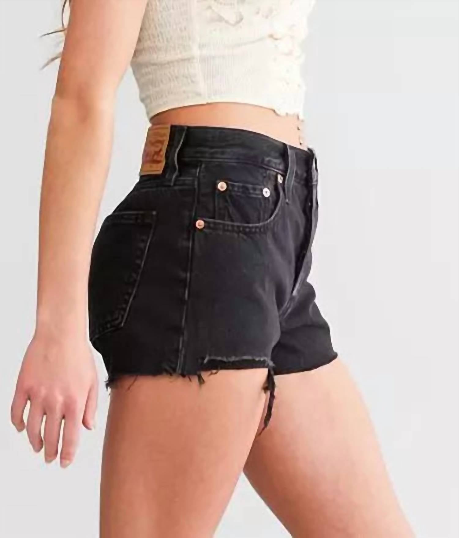 Jean shorts so versatile, you can literally wear them with anything. Experience timeless style with the 501® Original Fit High Rise Women's Shorts by Levi's in Lunar Black. These high-rise jean shorts offer a waist-defining design with a 10 1/2" rise and a 2 1/2" inseam, crafted from 100% cotton denim for a vintage-inspired fit and straight leg. Designed for a comfortable fit through the hips, they feature non-stretch fabric, a button fly closure, and classic 5-pocket styling. Care instructions include machine wash and tumble dry, making these shorts a practical yet fashionable choice for your summer wardrobe.