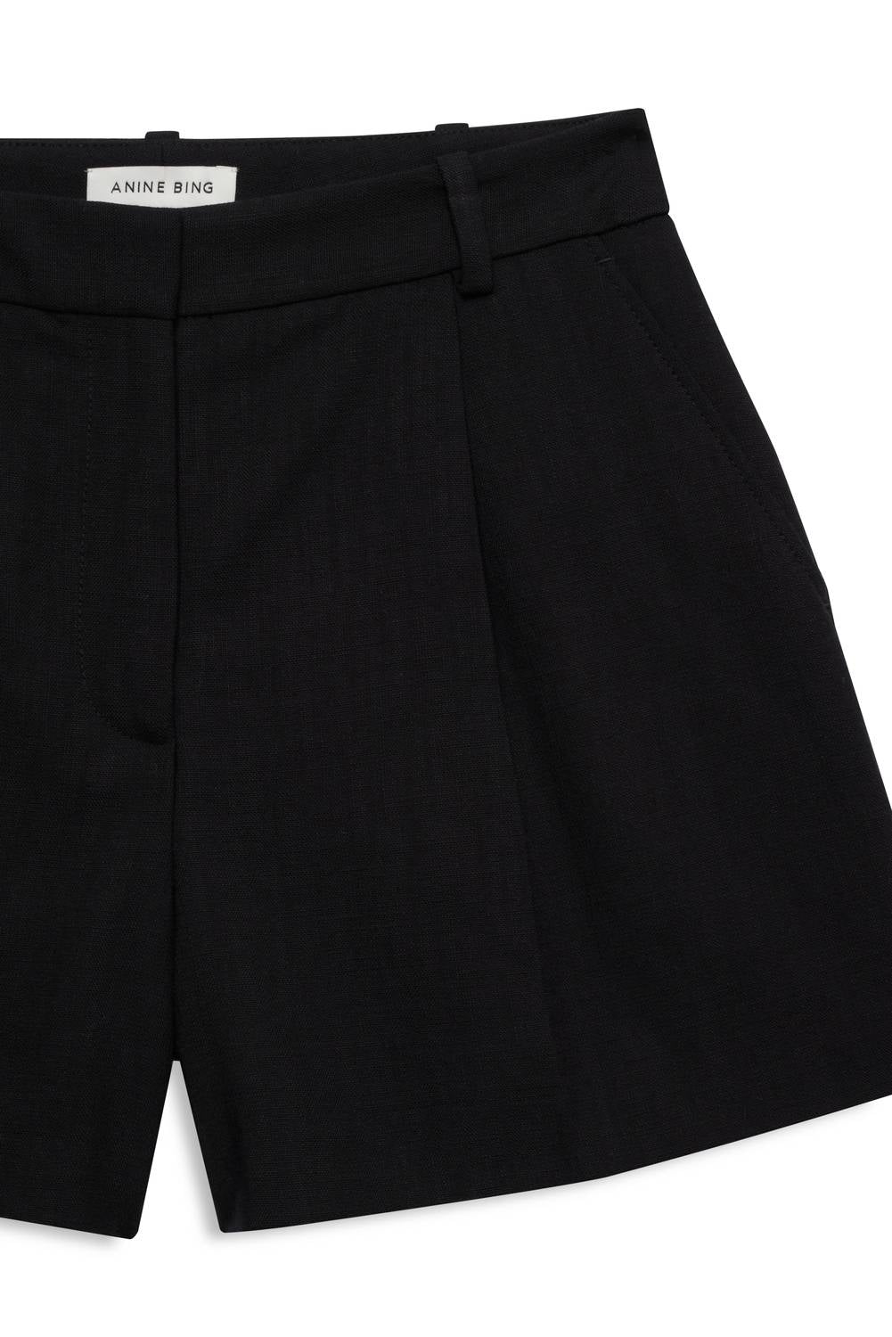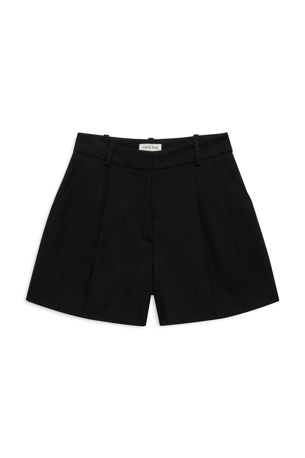 Not only cute but extremely comfortable. The jean shorts you will be reaching for all season long. Step into style with the Women's Trent Tailored Shorts by ANINE BING, showcasing a chic high-rise and tailored fit. Designed in black, these shorts feature a pleated front and a practical four-pocket style for modern functionality. Crafted from a luxurious blend of viscose and polyester, they offer comfort and a sleek silhouette, complete with a secure zip closure and belt loops. These shorts are machine washable, making them a versatile addition to any summer streetwear wardrobe. Ideal for vacation outings.