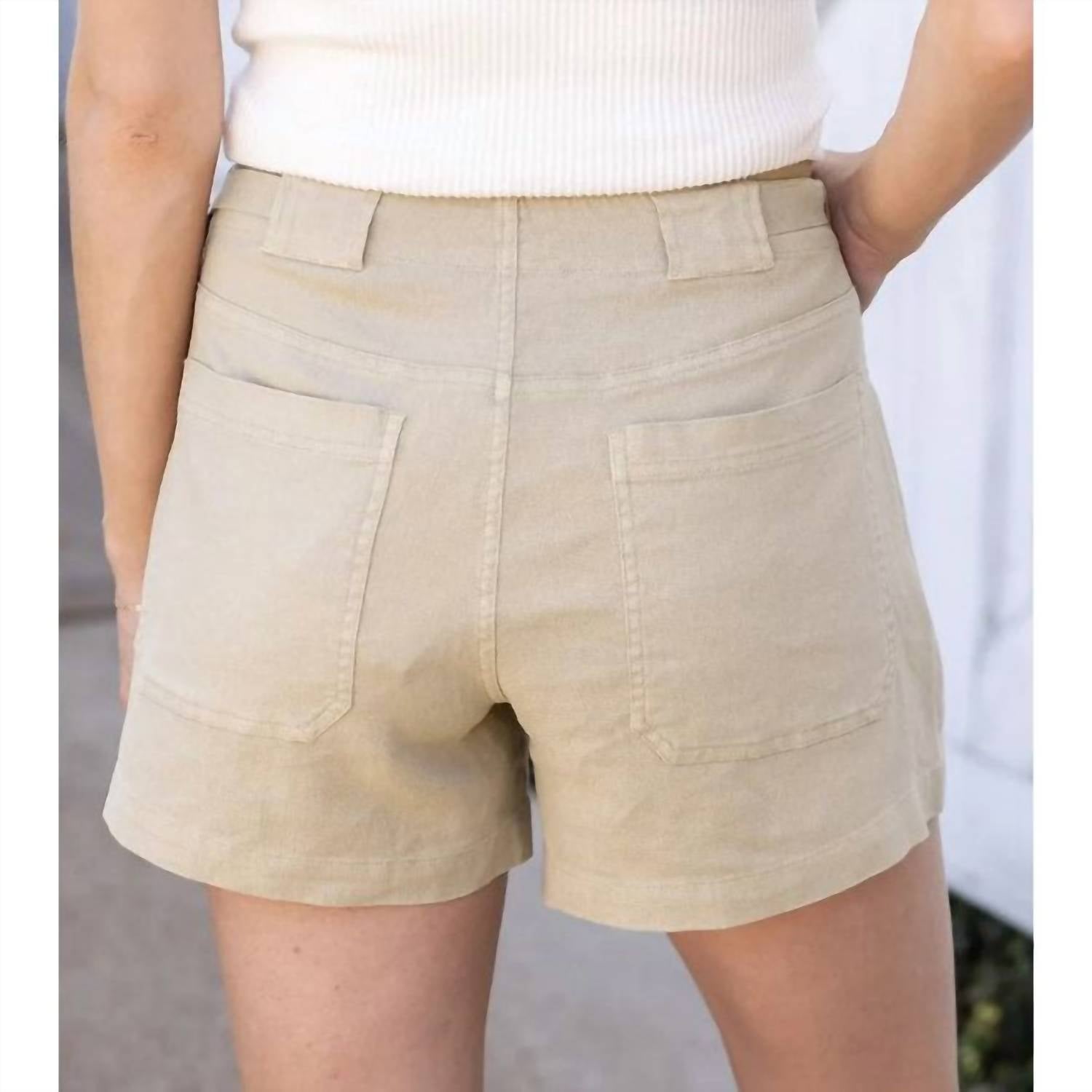 Not only cute but extremely comfortable. The jean shorts you will be reaching for all season long. Introducing the Khaki Linen Shorts by Grace and Lace, designed for effortless summer style with a minimalist touch. Featuring a versatile button closure, these shorts are crafted from a lightweight blend of 53% Linen, 24% Cotton, 21% Viscose, and 2% Spandex, ensuring breathable comfort for warmer days. With functional cargo-style pockets and adjustable cinch waist tabs, they offer both style and practicality. To keep them looking fresh, machine wash on a cold gentle cycle, use mild detergent, avoid bleach, and line dry; a cool iron can be applied if needed.