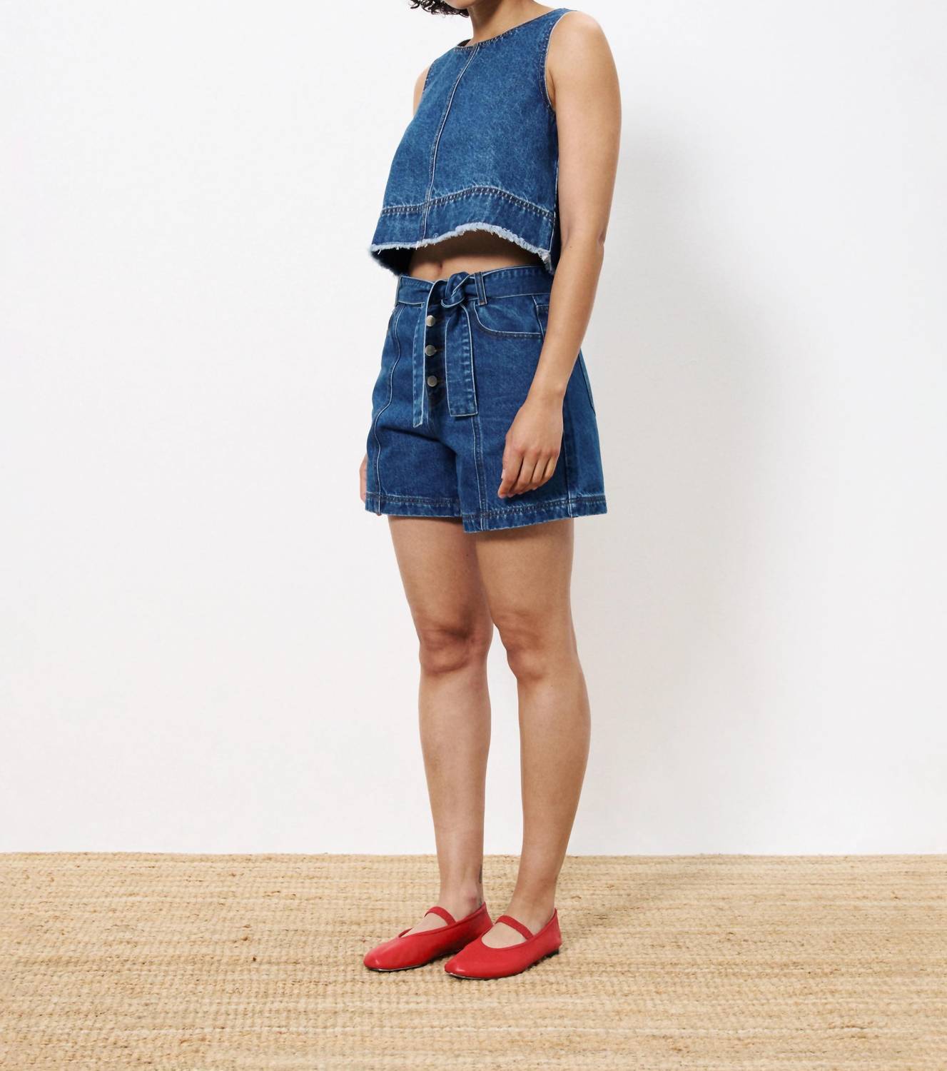 You can never have too many jean shorts and these will be your new favorites. Introducing the Nema Denim Shorts by FRNCH, a fabulous addition to your summer wardrobe in a solid blue hue. These medium-length jean shorts are crafted from a durable blend of 90% cotton and 10% polyester. A button closure secures the fit, complemented by a stylish removable belt for added versatility. Easy to care for, simply machine wash on a cold, delicate cycle and hang to dry.