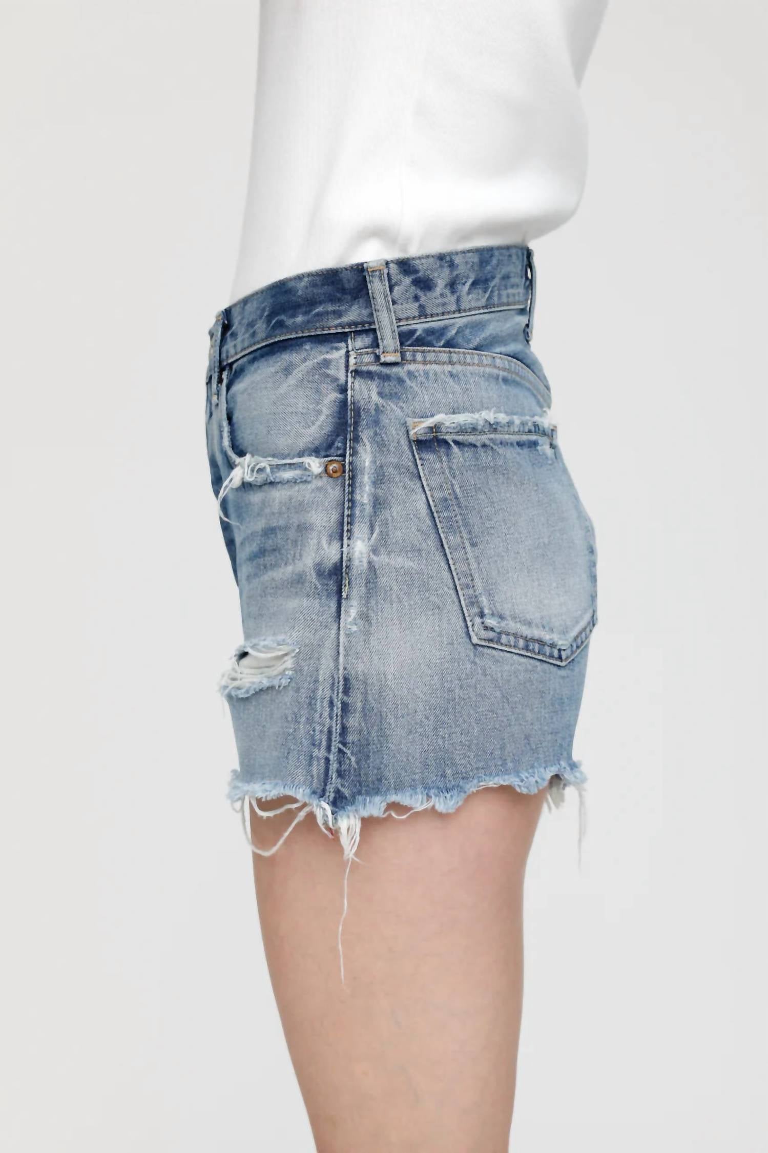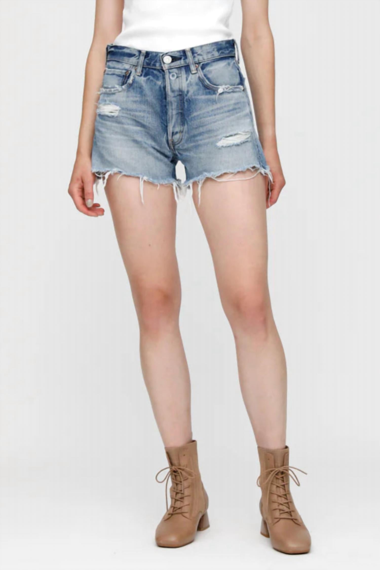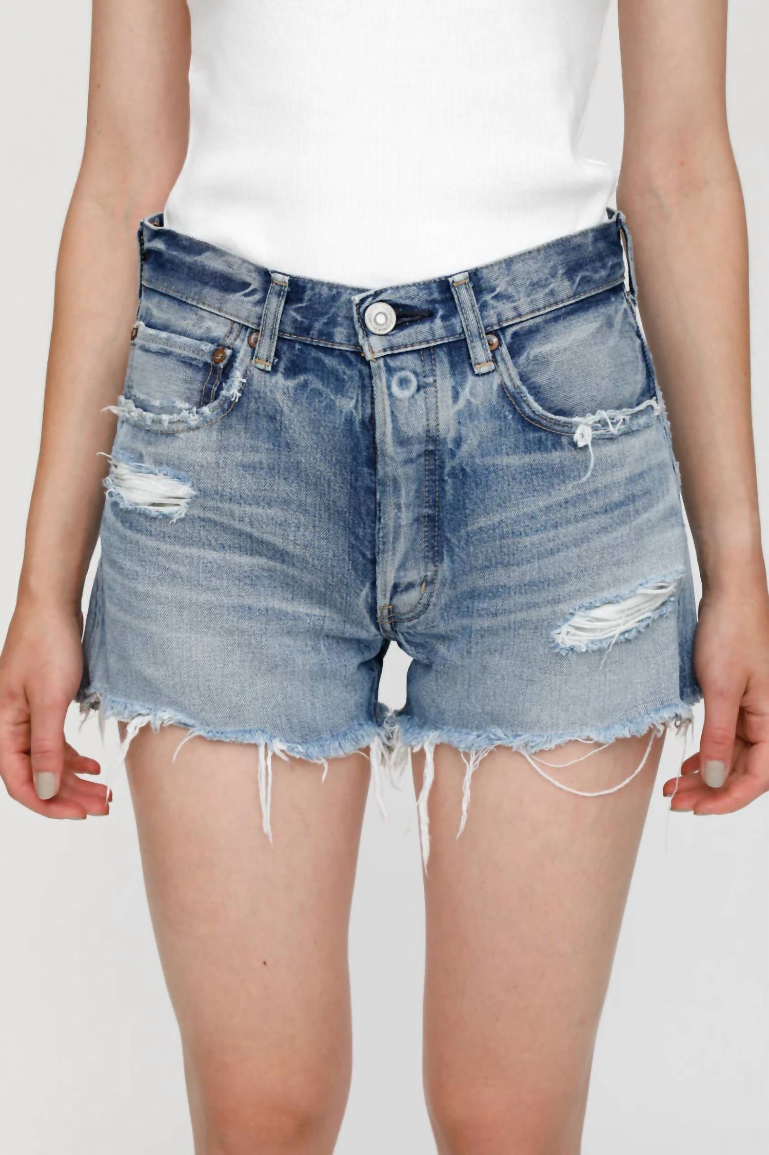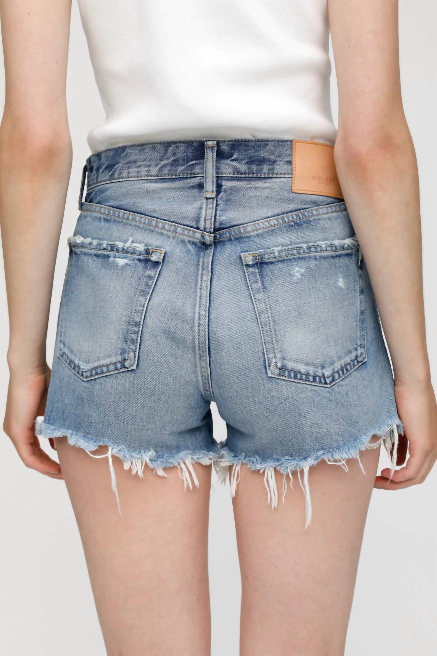Not only cute but extremely comfortable. The jean shorts you will be reaching for all season long. Meet the Packard Shorts by Moussy, your go-to choice for a stylish summer vacation look. Crafted from 100% cotton mid-weight denim, these solid blue jean shorts provide both comfort and durability. Designed with a button closure for added ease, they're imported from Japan. Care instructions suggest a delicate machine wash cold, avoiding bleach and tumble drying, with a cool iron and press cloth recommended.