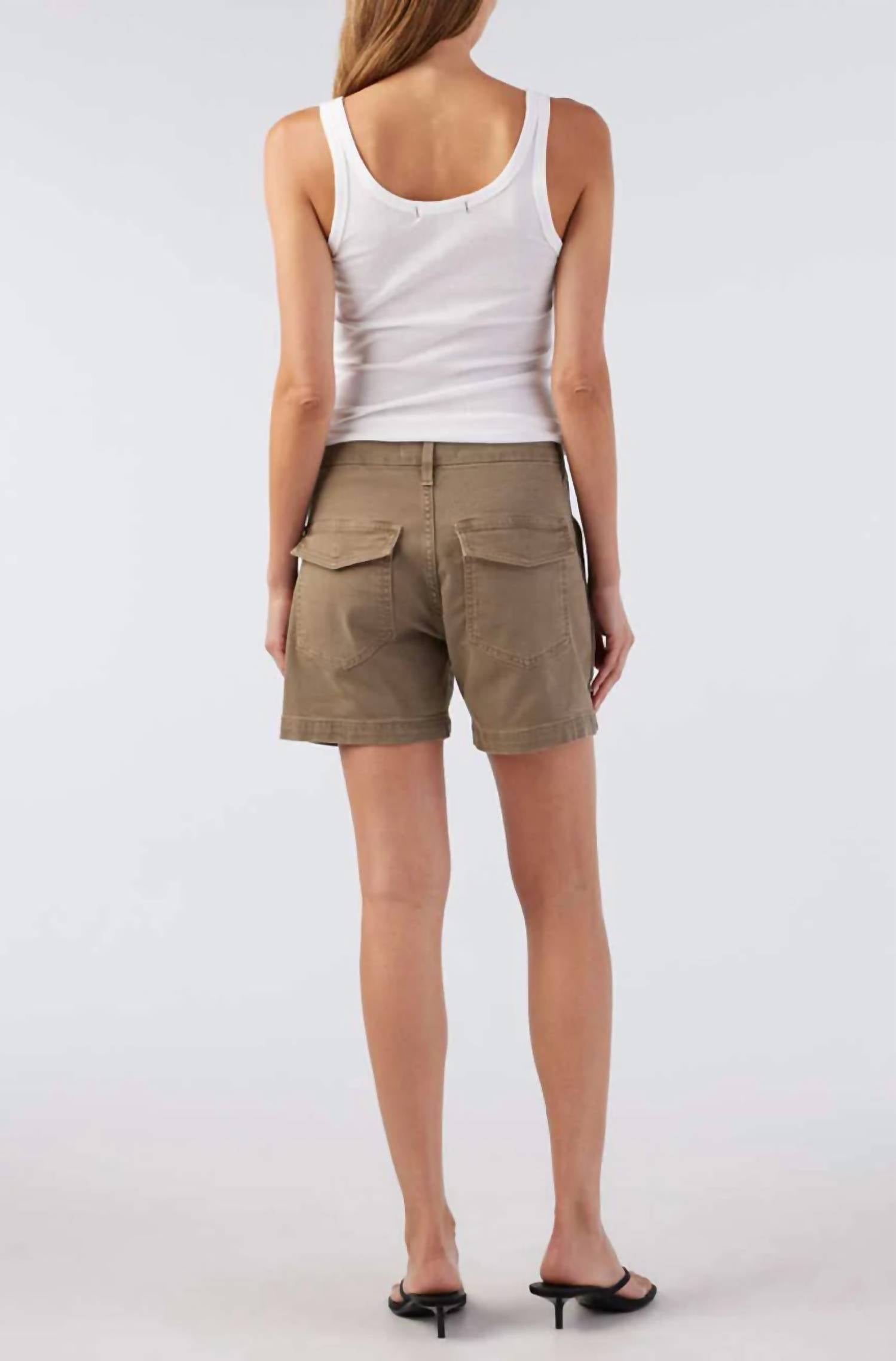 Jean shorts so versatile, you can literally wear them with anything. Discover the Easy Army Shorts by AMO, crafted in a solid Thyme hue for a minimalist appeal. Combining 70% cotton, 29% lyocell, and 1% elastane, these shorts offer a regular fit with a mid-rise waist and a straight leg for optimal comfort. Equipped with practical pockets and a button closure, these shorts feature a 4.5-inch inseam, making them ideal for summer getaways and vacation wear. Care instructions are simple: machine wash and tumble dry to maintain their crisp look. Model is 5'8.5" and wears a size 25.