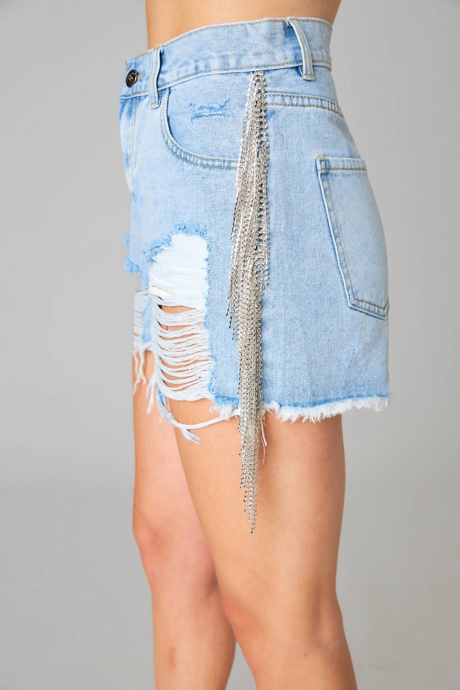 Not only cute but extremely comfortable. The jean shorts you will be reaching for all season long. Meet the BuddyLove Raven Rhinestone Denim Shorts, a light wash summer staple perfect for standing out in any crowd. These cotton denim shorts are embellished with textured rhinestones, elevating your streetwear style for holiday parties. They feature convenient pockets and a secure button closure. Perfect for adding a touch of sparkle to your Thanksgiving or any festive occasion.