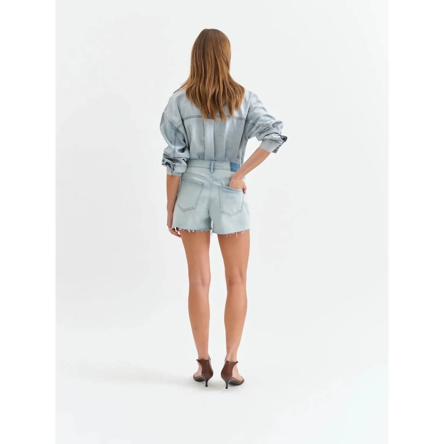 Jean shorts so versatile, you can literally wear them with anything. For a touch of streetwear flair, the Women's Sedona Mid Rise Short by DAZE is the perfect addition to your spring vacation wardrobe. These solid Swoon shorts feature a practical zip closure and handy pockets for all your essentials. Suitable for any casual occasion, they effortlessly blend style and functionality. Embrace the trend with a versatile piece that belongs in every woman's closet.