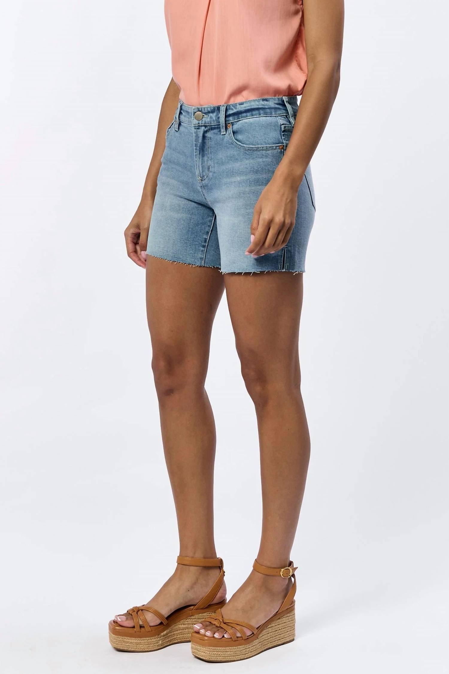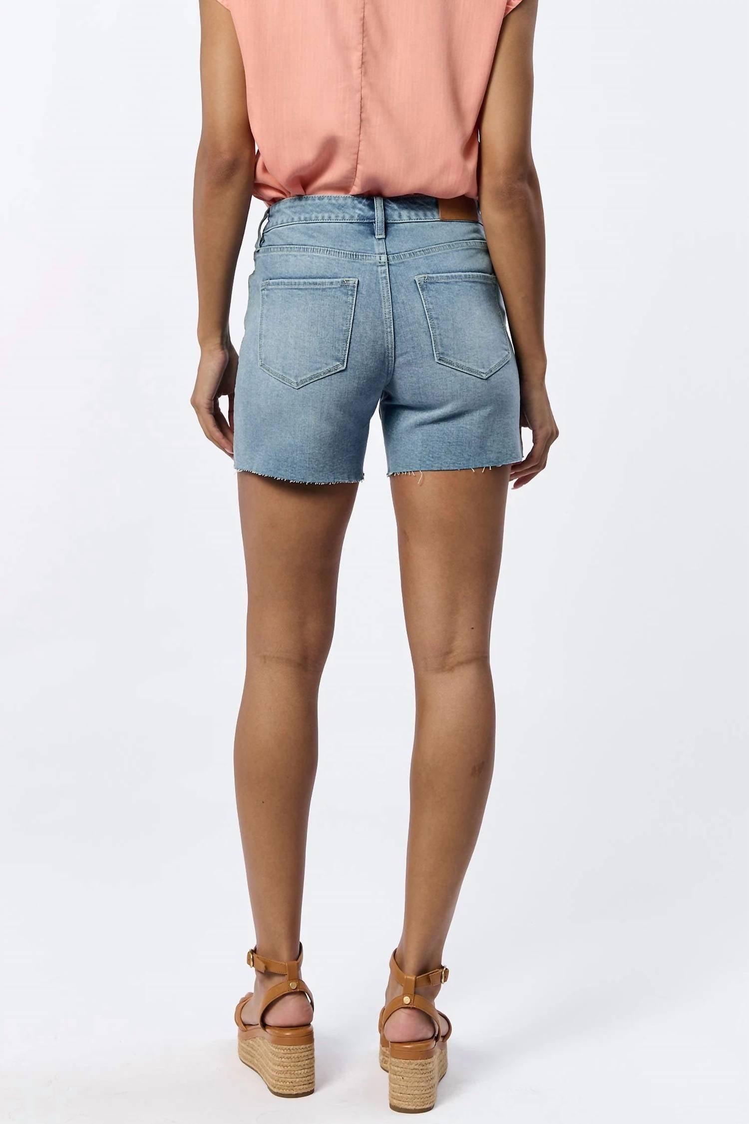 Not only cute but extremely comfortable. The jean shorts you will be reaching for all season long. Experience the laid-back comfort of the Julian Denim Shorts Mercer by DEAR JOHN DENIM, a stylish choice for casual outings. These women’s jean shorts are crafted from 99% cotton and 1% spandex denim, offering a flattering mid-high rise and eye-catching raw cut hem. With a button closure, they boast practical pockets, making them a summer wardrobe essential. Dimensions include a front rise of 10" (including waistband), leg opening of 22", and inseam of 5" for size 27. Care is simple with machine wash and tumble dry instructions, ensuring easy maintenance.