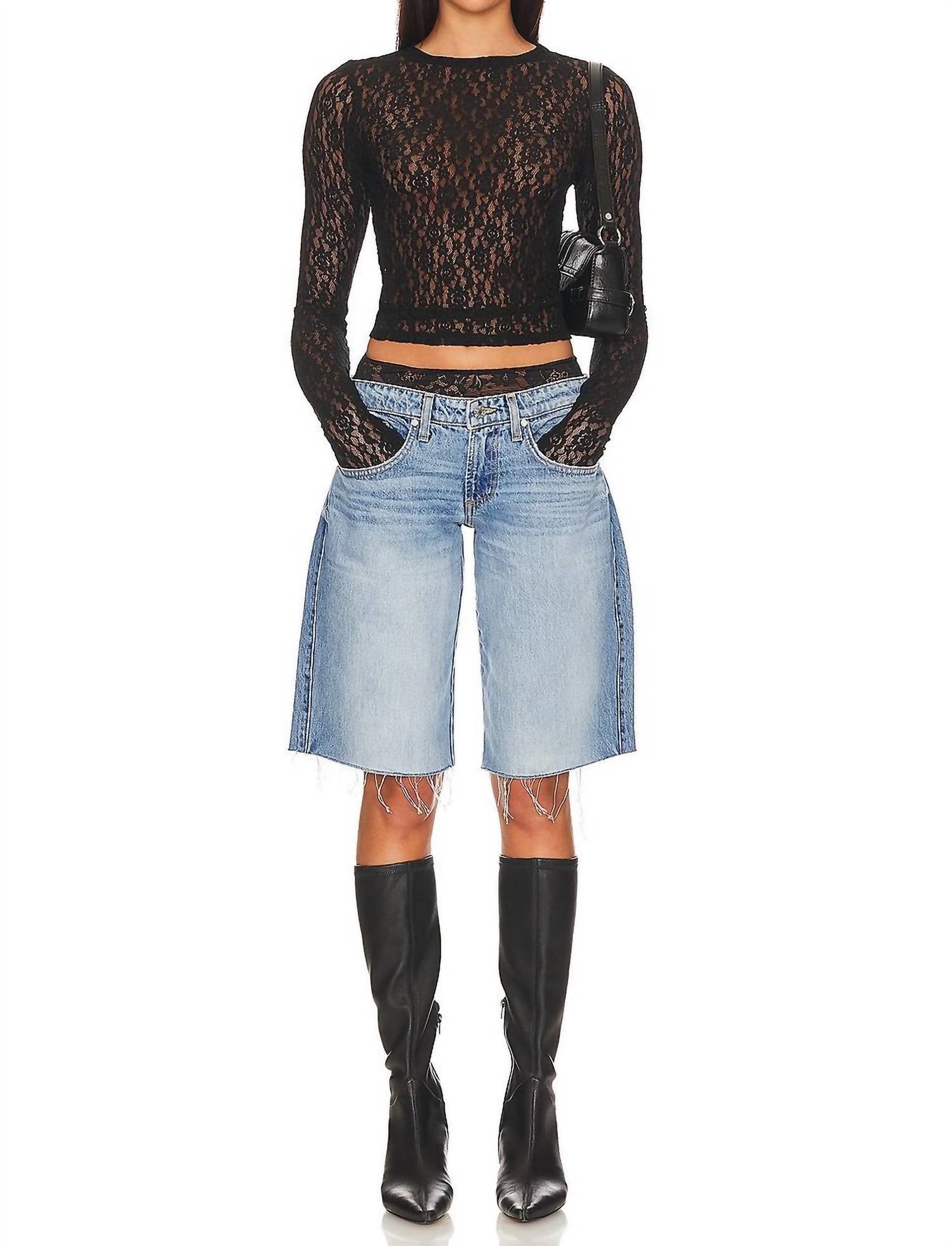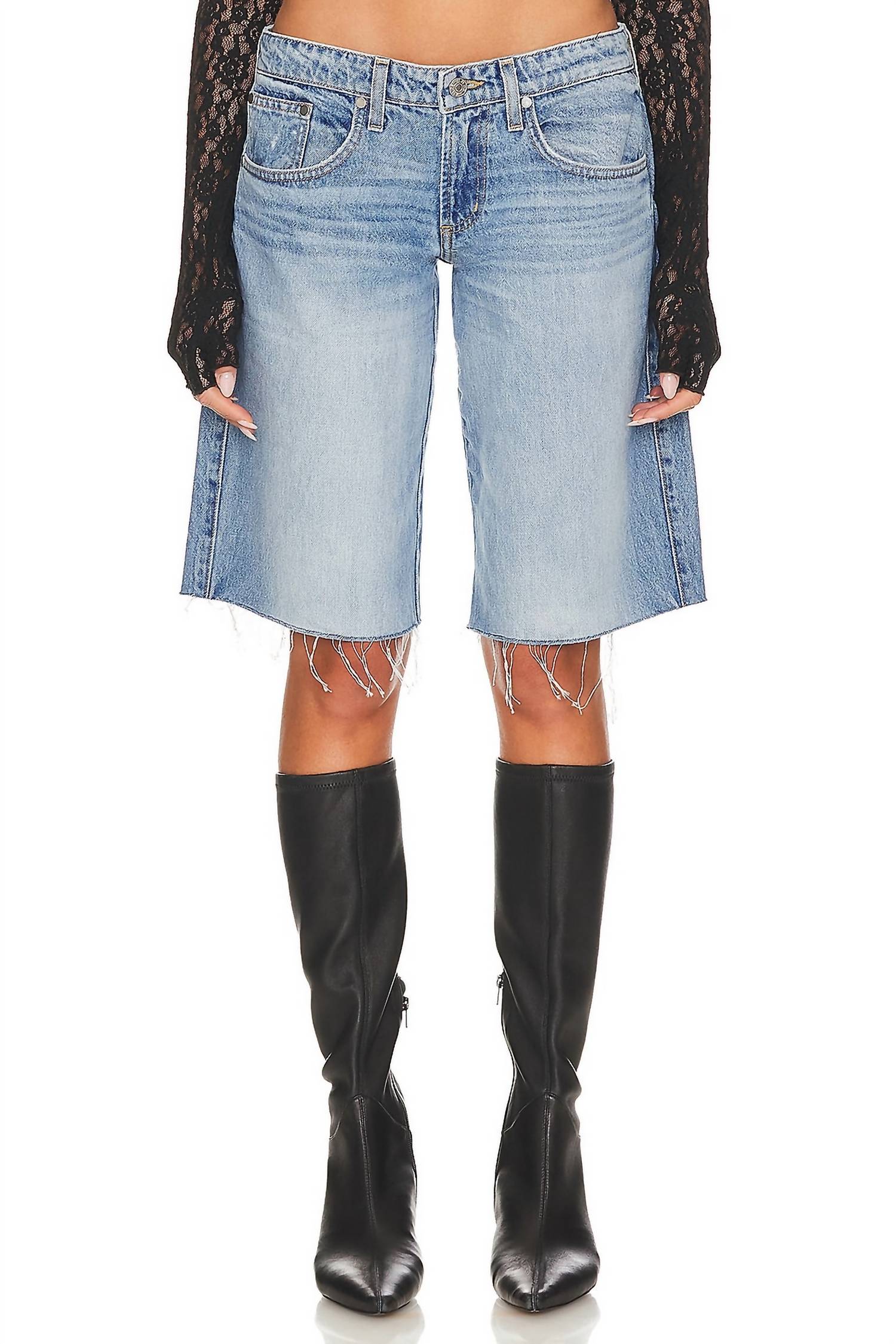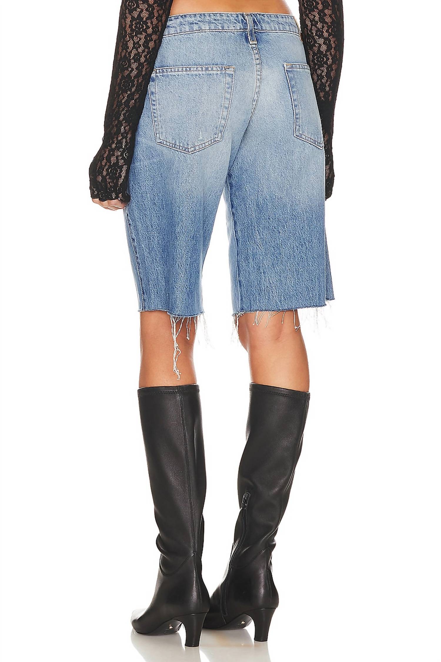 You can never have too many jean shorts and these will be your new favorites. Experience the effortless style of the Loon Raw Cut-off Straight Cotton Shorts by EB Denim in the stylish Luca color. Featuring a 13.25-inch inseam and a leg opening of 10.75 inches, these shorts are made from 100% premium rigid cotton denim with a classic 5-pocket design. Crafted in the United States, they sit loose and low on the hips with a stylish raw cut-off hem. Closure: Zip closure. Care Instructions: Dry clean. Ideal for a casual concert or embracing the vintage trend this spring.