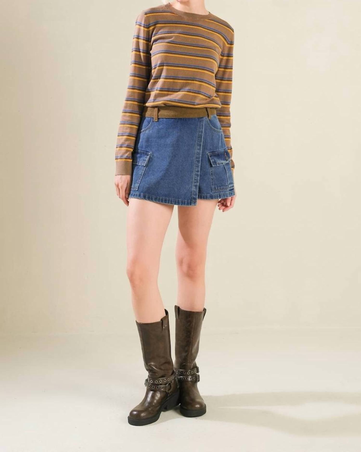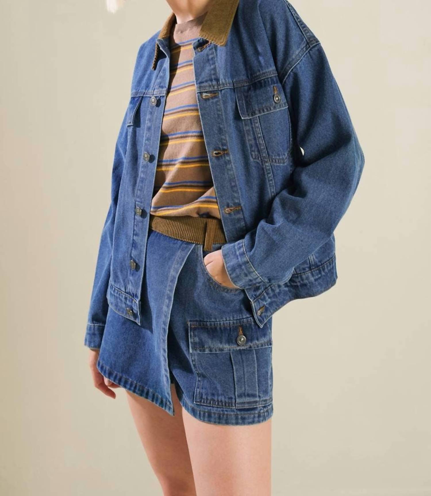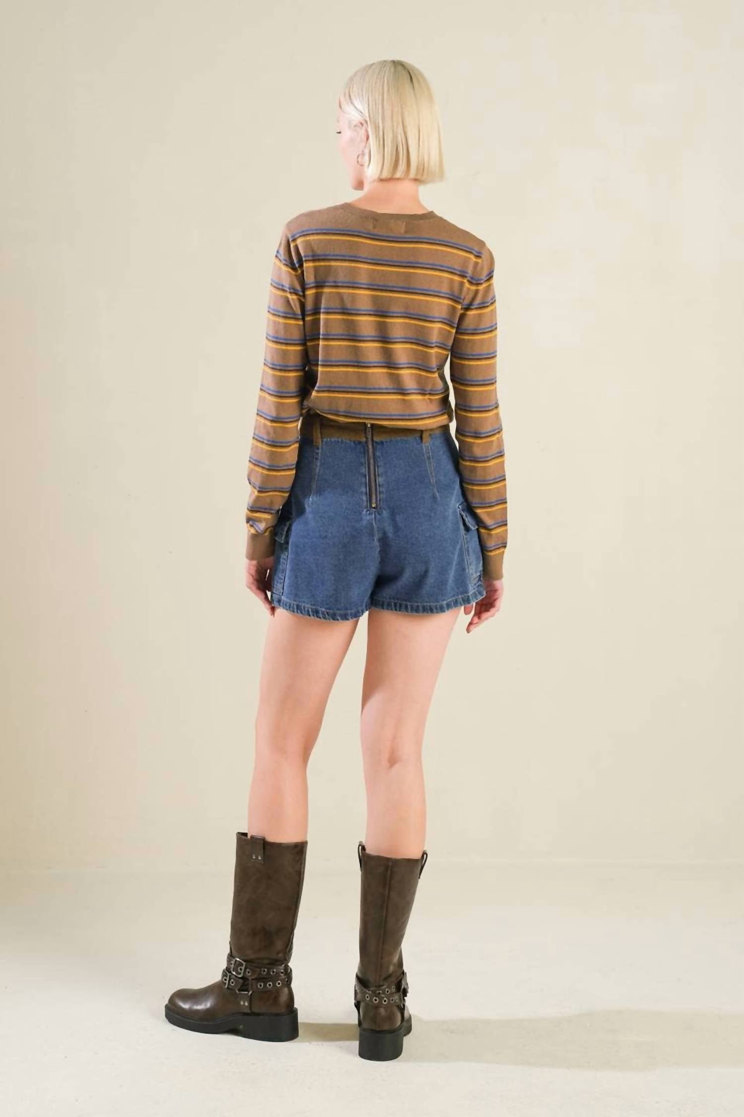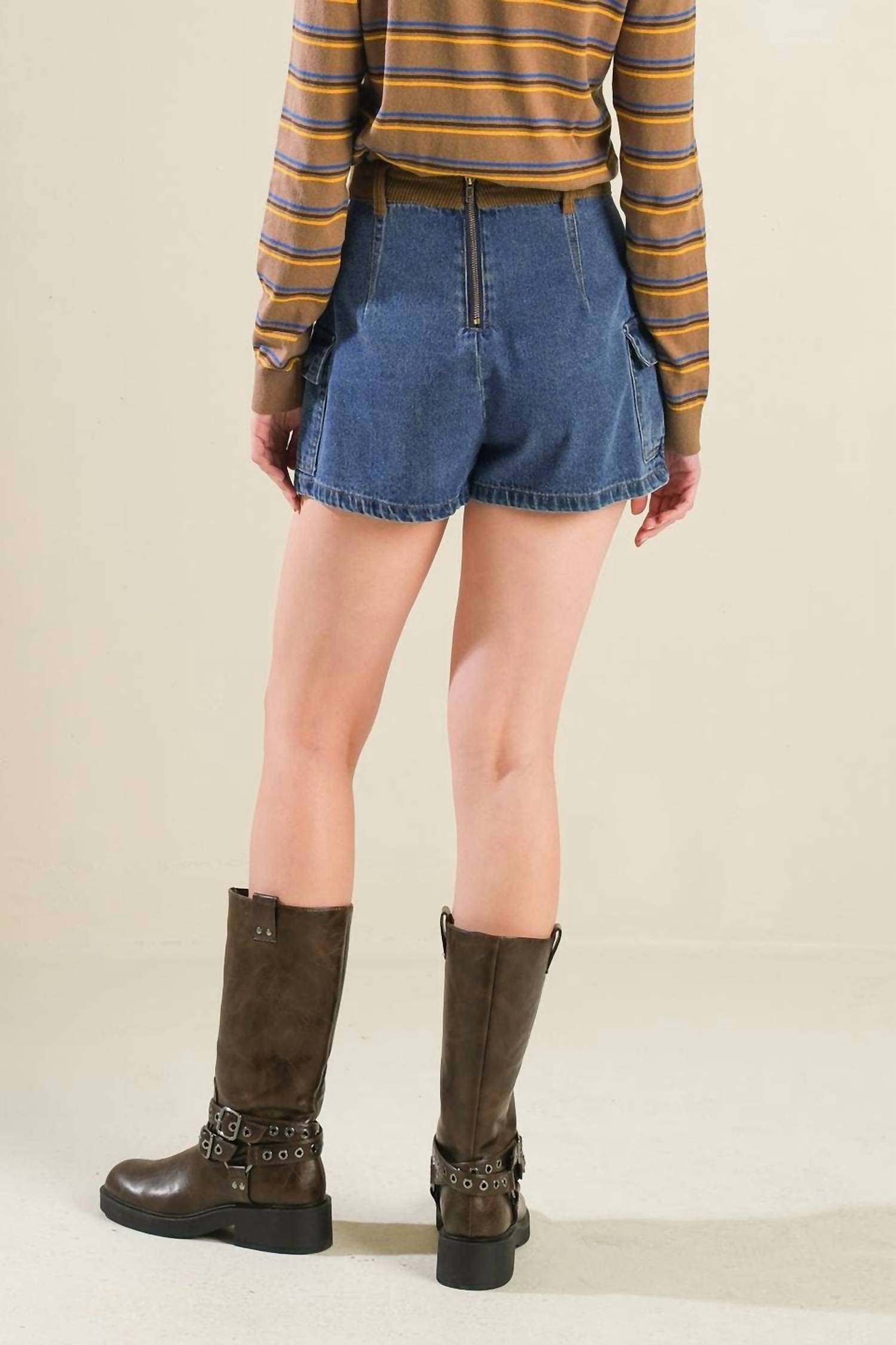 Not only cute but extremely comfortable. The jean shorts you will be reaching for all season long. Introducing the Flying Tomato Washed Denim Skort, a chic addition to your fall wardrobe. This solid denim blue skort is crafted from 100% cotton, offering a breathable and comfortable fit. With a practical design featuring side pockets and a contrasting waistband, it closes securely with a back zipper. Perfect for a holiday party or Halloween gathering, this skort measures approximately 14 inches in length, and the model wearing it is 5'8" and sporting a size small.