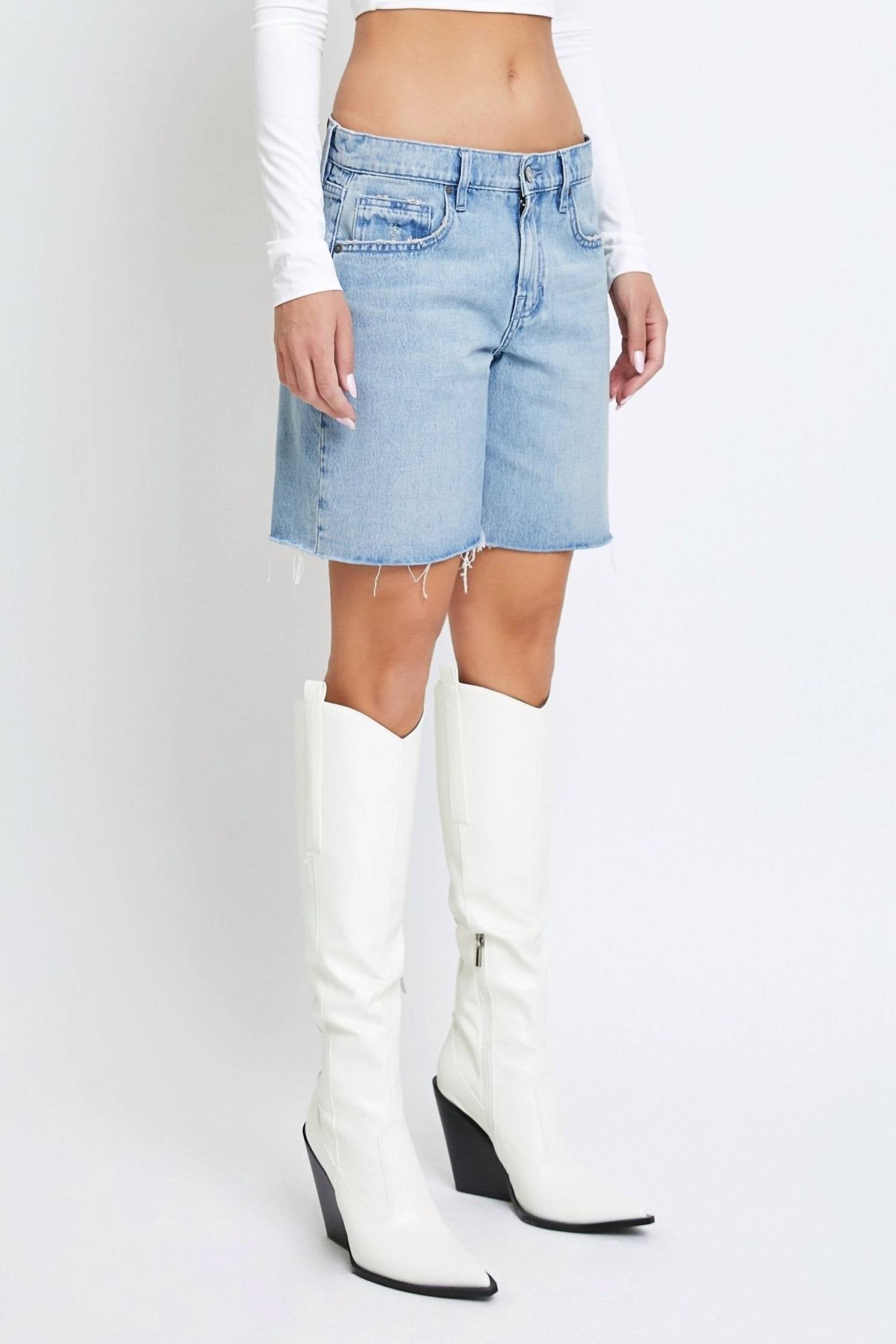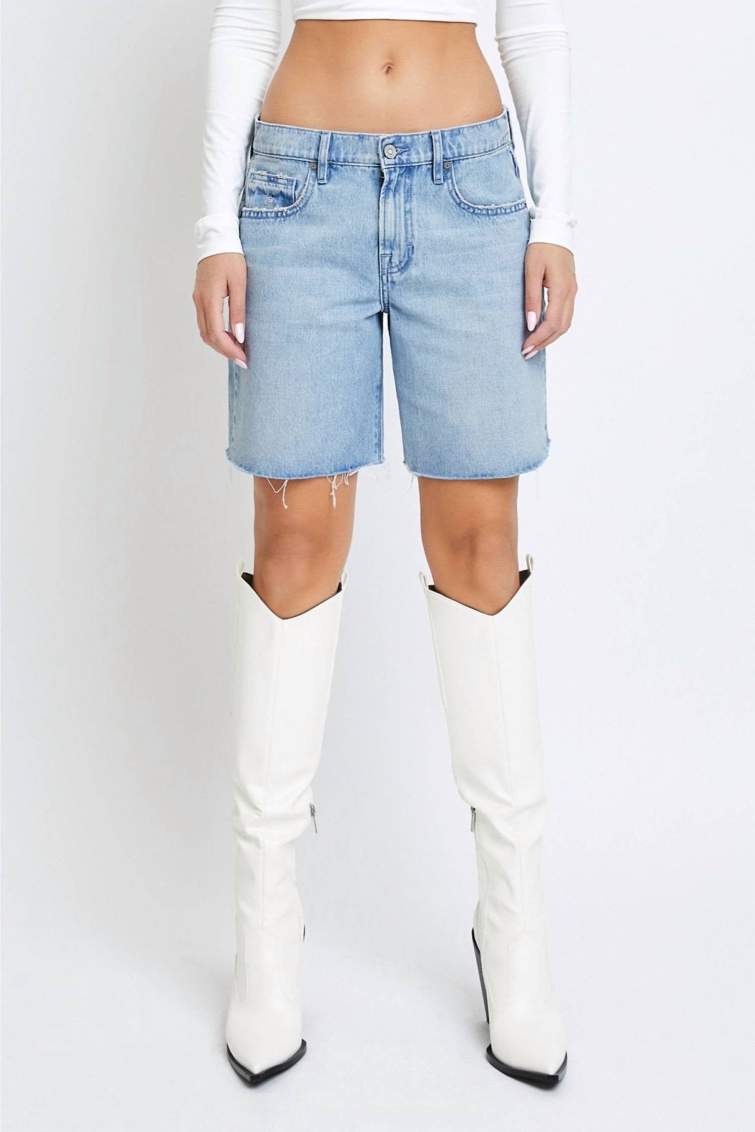 You can never have too many jean shorts and these will be your new favorites. Introducing the Alyx Baggy Denim Shorts by HIDDEN, a must-have for your vacation wardrobe with a touch of 90s fashion flair. Crafted from 100% cotton, these solid-colored blue jean shorts feature an 8-inch inseam perfect for everyday comfort. The classic button closure and pocket-equipped design make them both stylish and practical. Easy to care for, just machine wash and tumble dry to keep them looking fresh.
