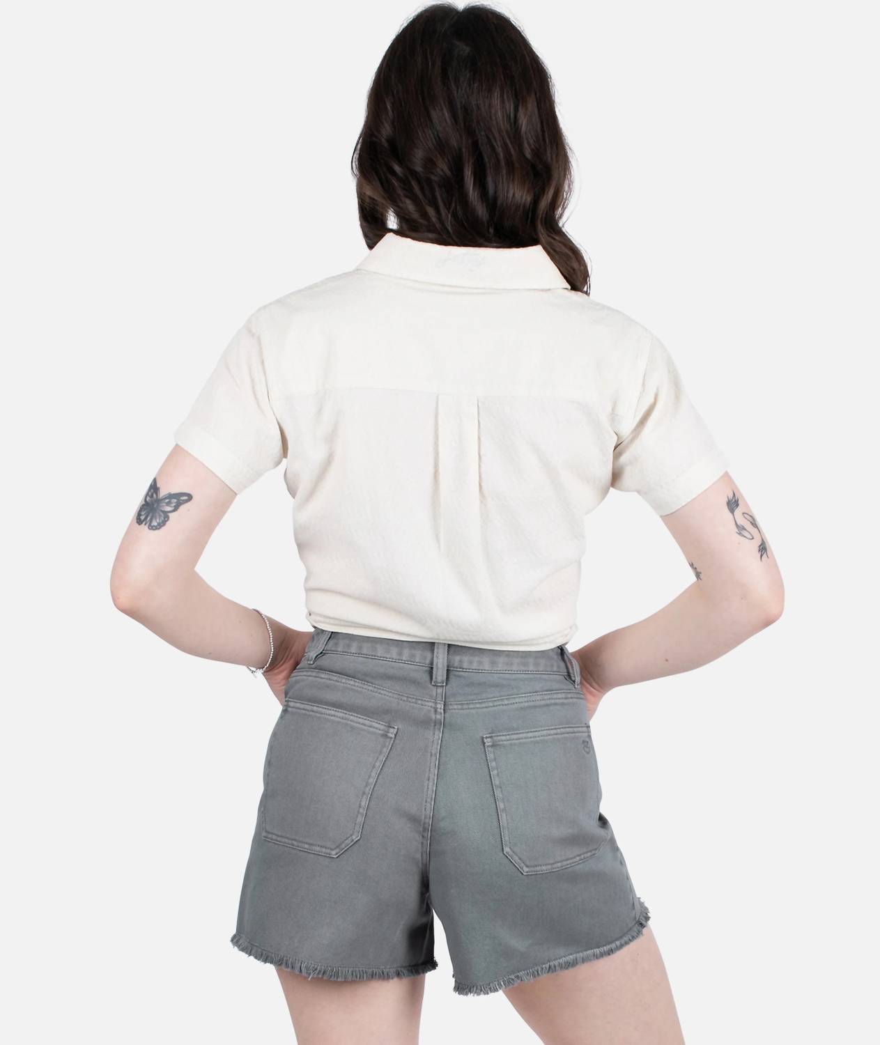Not only cute but extremely comfortable. The jean shorts you will be reaching for all season long. Introducing the Elle Short by Jetty, a must-have for warm weather outings in a chic Storm shade. Crafted from 100% cotton, these jean shorts boast a 5-pocket design and a convenient 3.5" inseam tailored for a size small. Featuring a branded Jetty button and zip closure, they offer both style and functionality. Ideal for casual summer days, these shorts blend comfort with timeless appeal.