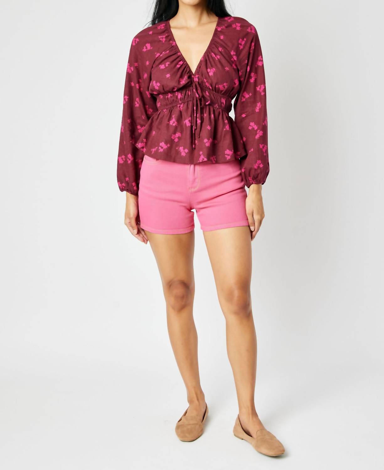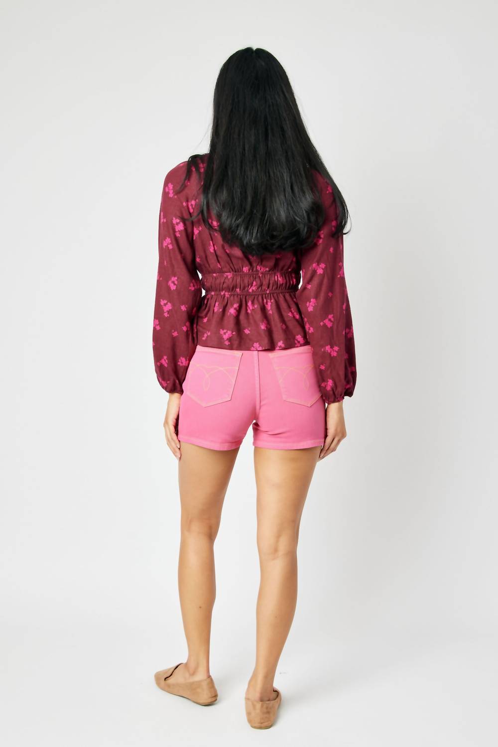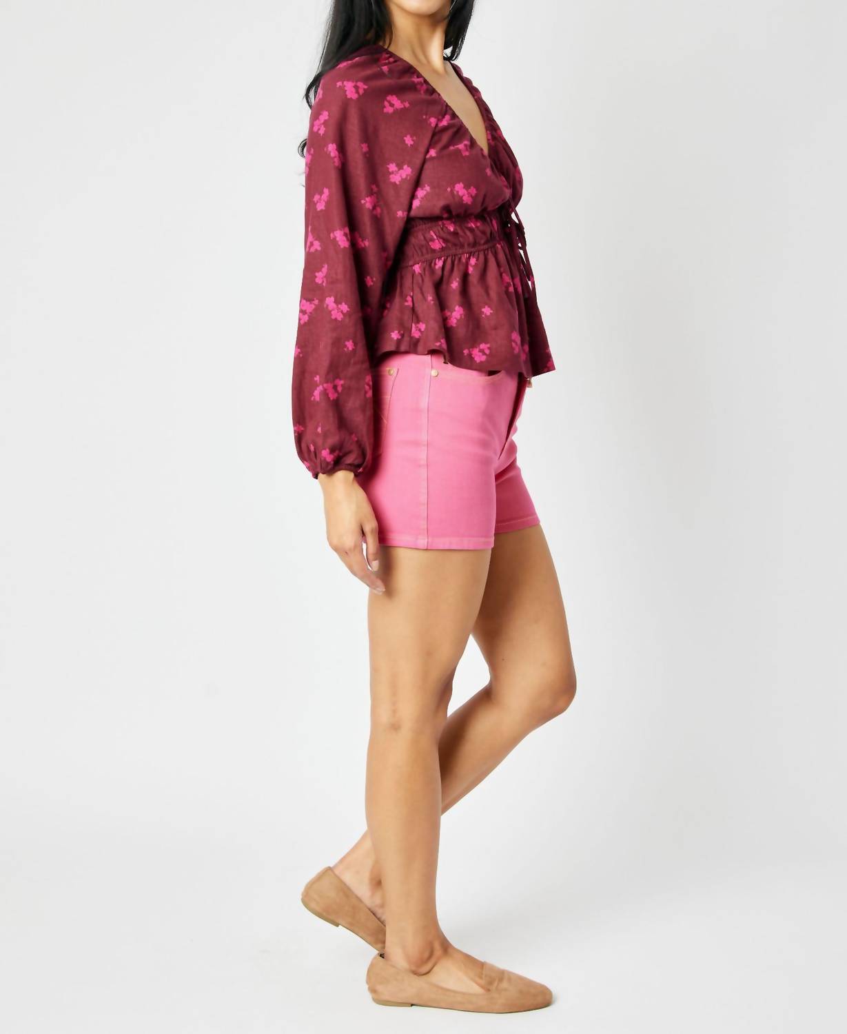 Not only cute but extremely comfortable. The jean shorts you will be reaching for all season long. Elevate your summer style with the High Waist Pocket Embroidery Shorts by Judy Blue, showcasing a vibrant garment-dyed pink hue. These women's shorts feature a flattering high waist and practical pockets, with a button closure for a secure fit. Crafted from a cotton blend composed of 93% Cotton, 6% Polyester, and 1% Spandex, they are designed for comfort and flexibility. With an inseam of 4" and a front rise of 10.75", they offer a chic Boho appearance, ideal for a dinner party. Care instructions advise machine washing and laying flat to dry, ensuring easy maintenance. Model is wearing size S (5'8" height, 25" waist, 35.5" hip).