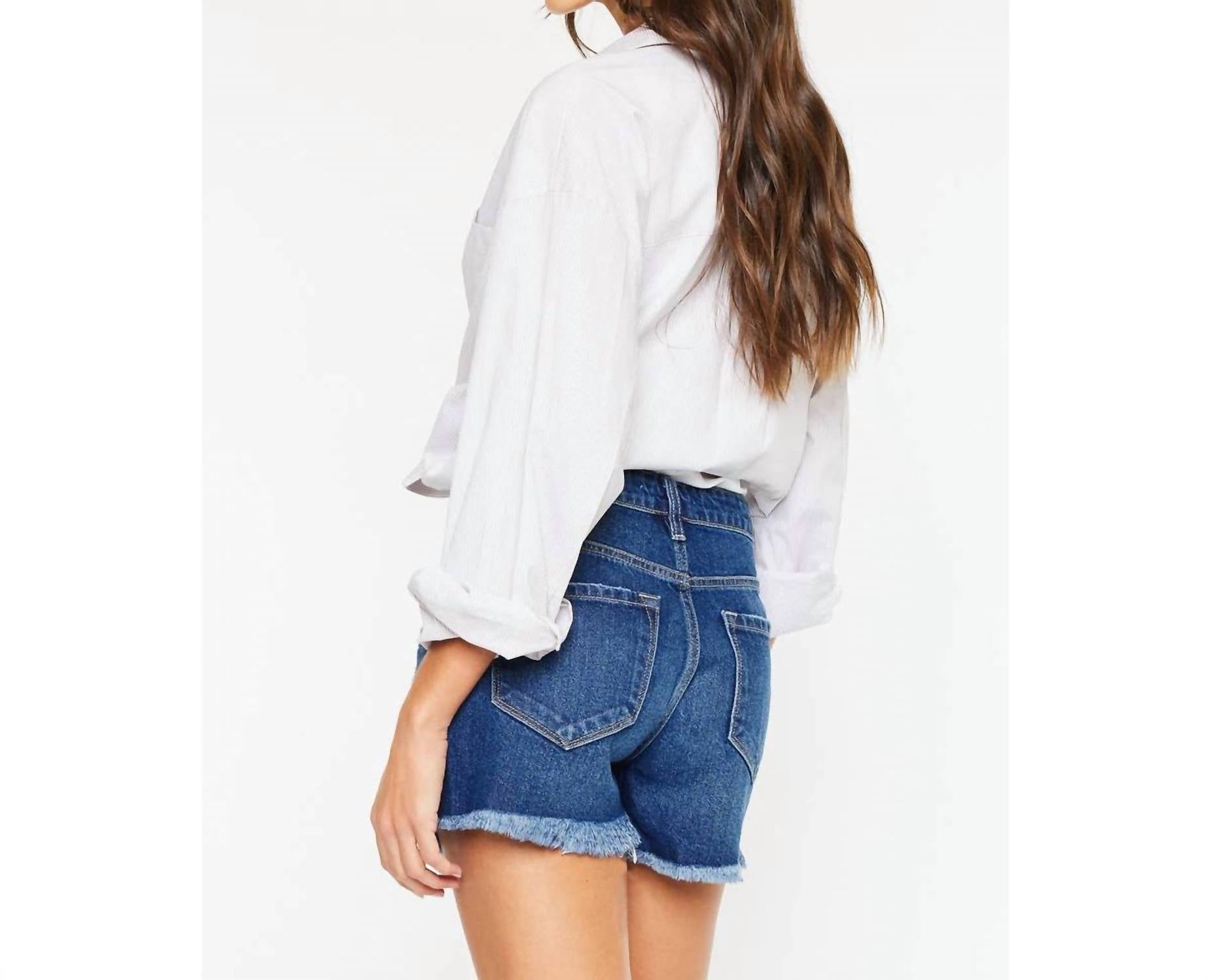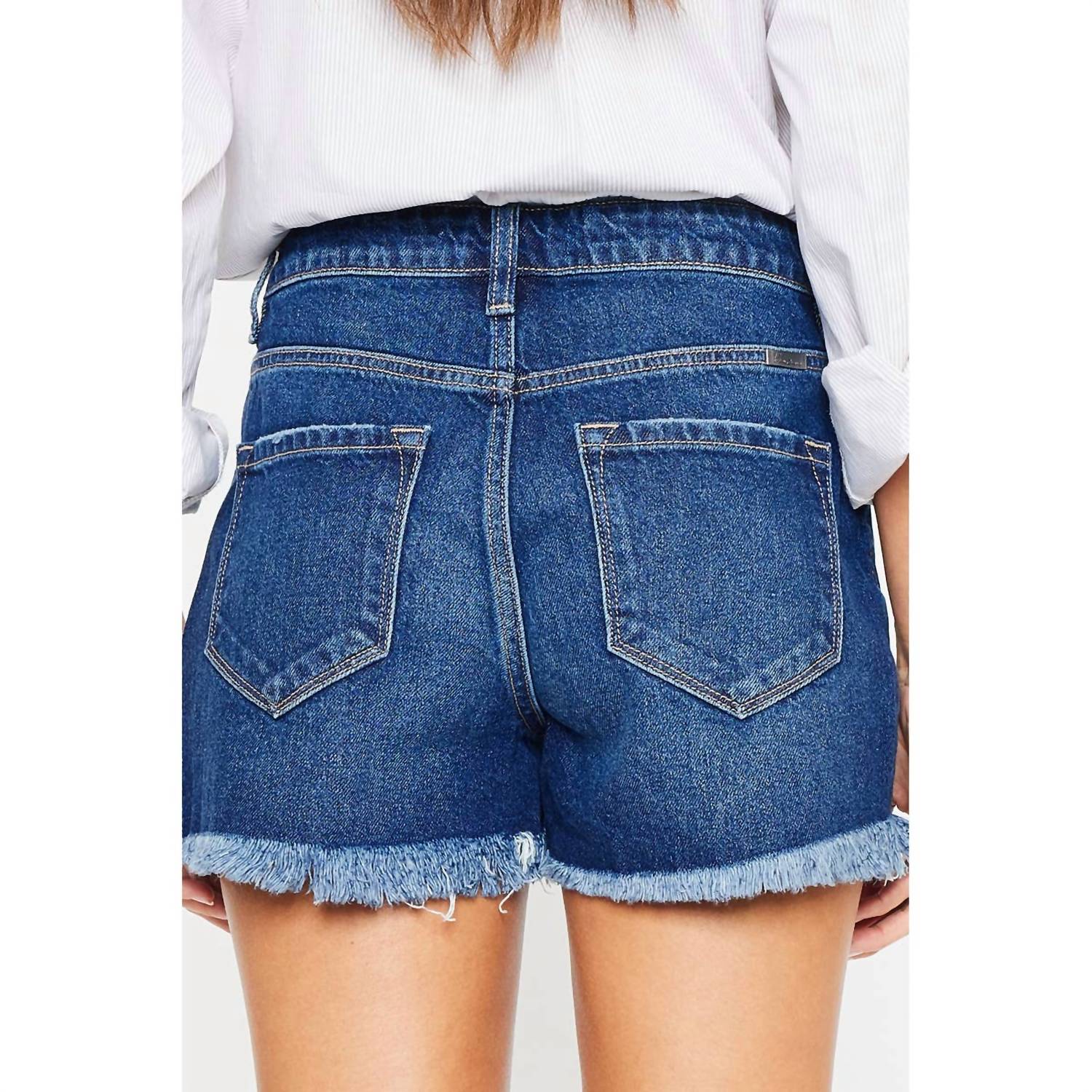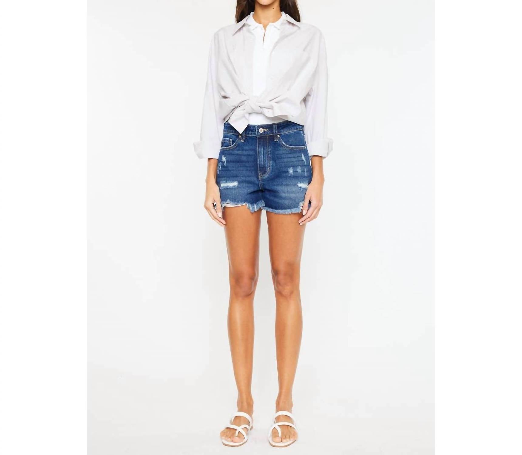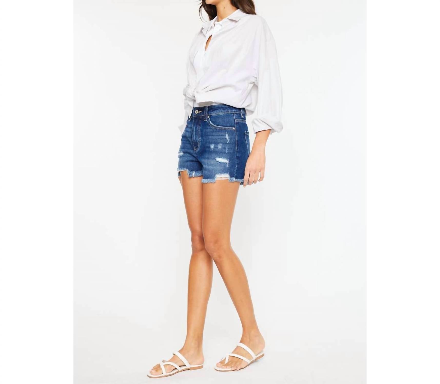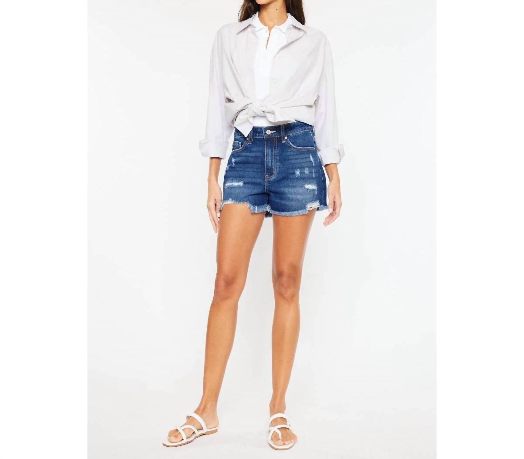 Jean shorts so versatile, you can literally wear them with anything. Introducing the Glora High Rise Distressed Shorts by KanCan, a stylish staple for your summer streetwear collection. These dark stone cotton shorts feature a textured design with a five-pocket style and a frayed hem for a touch of edge. With an 11.25" high rise and 3" inseam in size M, they ensure a flattering fit. Closure: Button closure. Care: Machine wash, line dry.