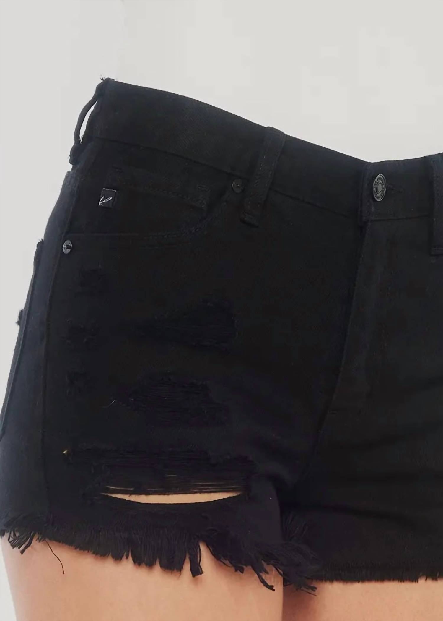 Elevate your summer wardrobe with the KanCan High Rise Fray Hem Denim Shorts, ideal for travel or streetwear occasions. Designed for women, these shorts are crafted from 100% cotton for a comfortable fit in a solid black hue. The zip closure ensures ease of wear, while pockets add practicality. Care is simple with machine wash cold and tumble dry low instructions. Available sizes range from 1/24 to 11/29, offering inseam variations from 1.75" to 2.75".