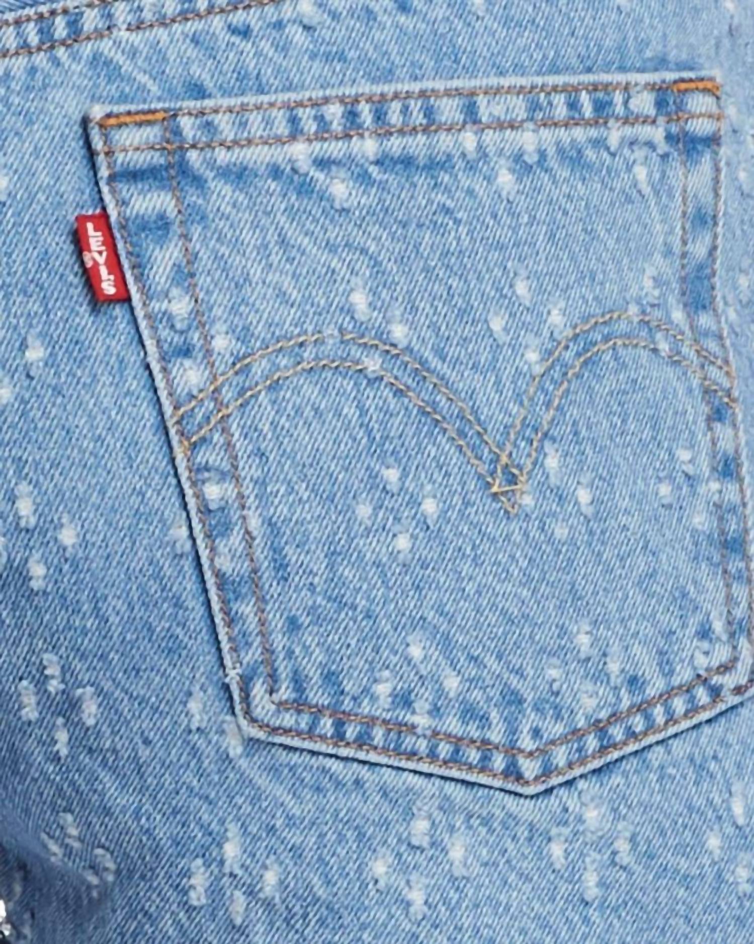 Not only cute but extremely comfortable. The jean shorts you will be reaching for all season long. Meet the 501 High Rise Button Fly Fringe Dottie Jeans by LEVI'S, where vintage-inspired design meets modern style. Made from 100% cotton, these shorts feature a medium blue wash with allover shredded details and frayed hems. With a high waist and a button fly closure, they boast a five-pocket silhouette and classic contrast stitching, complemented by silver- and copper-tone logo hardware. The inseam is 2", front rise 11", back rise 14", leg opening at hip 11.25", and waist 15", making them a standout addition to any wardrobe. Machine wash for easy care.