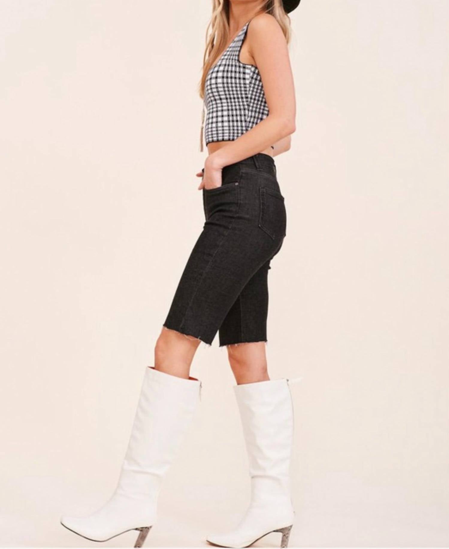 Not only cute but extremely comfortable. The jean shorts you will be reaching for all season long. Introducing the Amalfi Denim Shorts by Listicle, a standout piece for your summer streetwear collection. These women's jean shorts feature a solid black color and come in a chic clay tone, crafted from a comfortable cotton blend with 98% cotton and 2% spandex for the perfect stretch and fit. The design includes pockets and a raw edge hem, adding a bit of edginess to your vacation wardrobe. Closure: Button Closure. Care: Machine wash and tumble dry. Perfect for laid-back summer days or 4th of July celebrations.